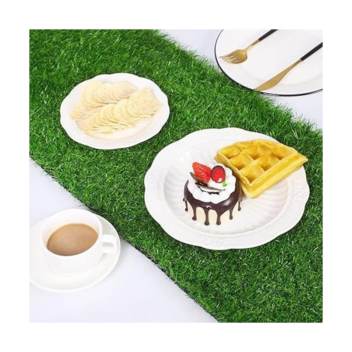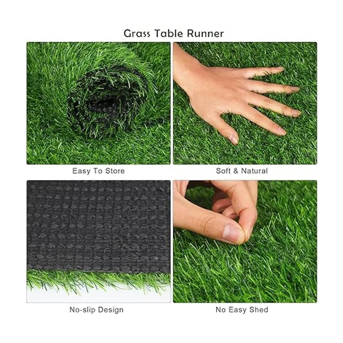 Amplios usos: el camino de mesa de césped sintético es adecuado para varias actividades en interiores o exteriores, como vacaciones de primavera y otoño, recepciones, fiestas, banquetes, cumpleaños, bufés de dulces, etc., decoración ideal para mesa de postres, cubiertos, escritorios y decoración de la casa
