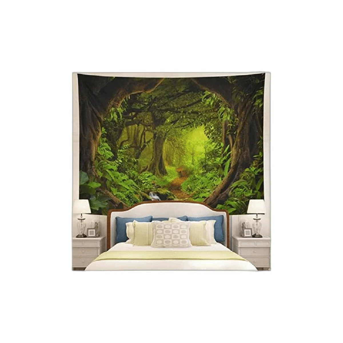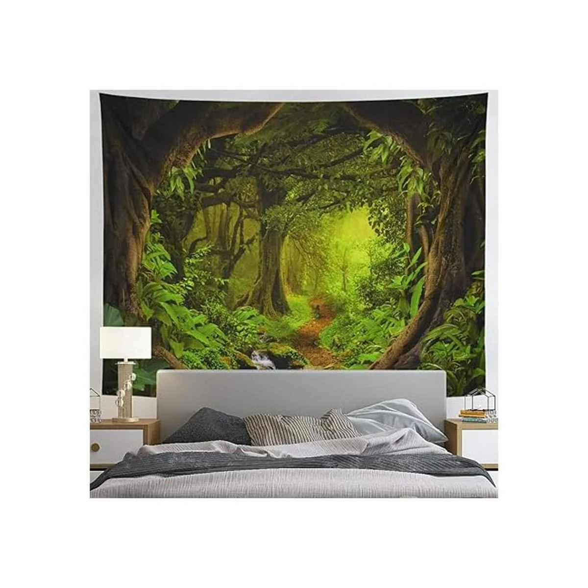 Tushelia Tapiz de bosque, tapiz de cueva de árbol natural, tapiz de bosque brumoso para colgar en la pared, tapiz de paisaje de selva, tapiz psicodélico para sala de estar