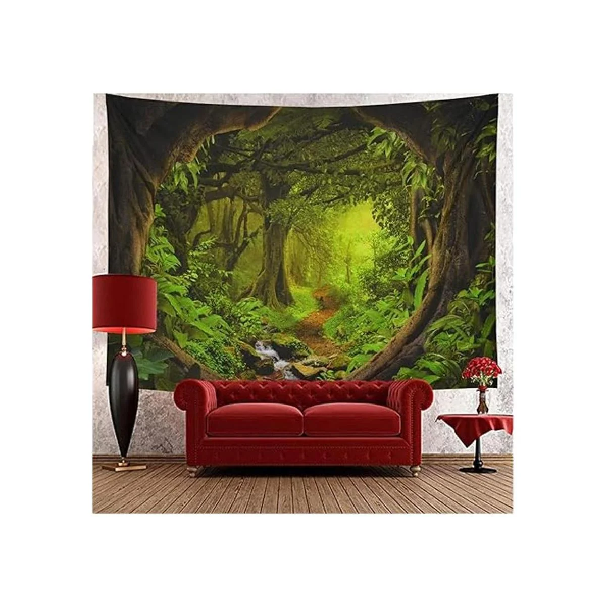 Diseño único: el tapiz de pared con cueva de árbol antiguo es muy especial. Mirando desde la cueva del árbol, la niebla en el bosque y el flujo fluido están llenos de misteriosa aventura.