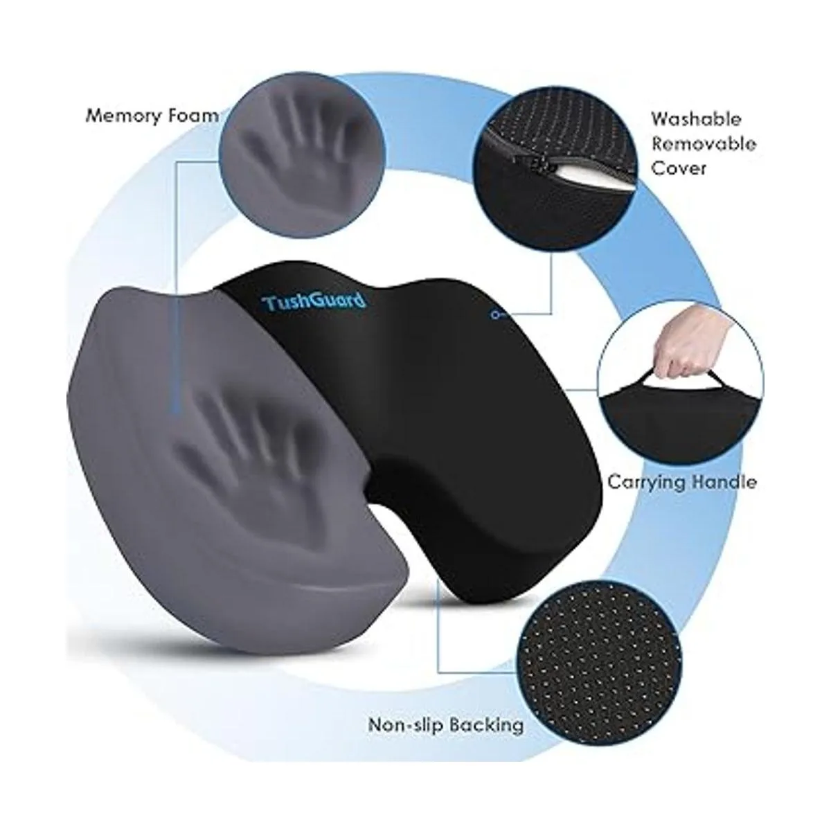 TushGuard Cojín de asiento para silla de oficina de espuma viscoelástica, antideslizante, cojín para silla de escritorio, coxis, ciática, almohada para aliviar el dolor de coxis para silla de oficina, automóvil, silla de ruedas, negro