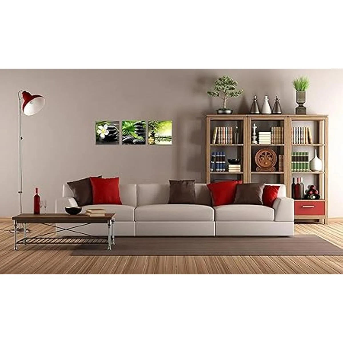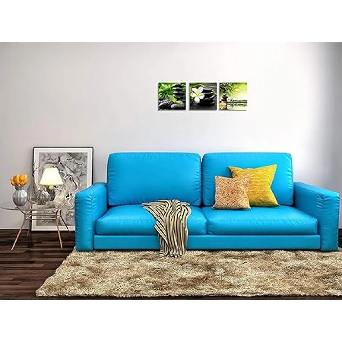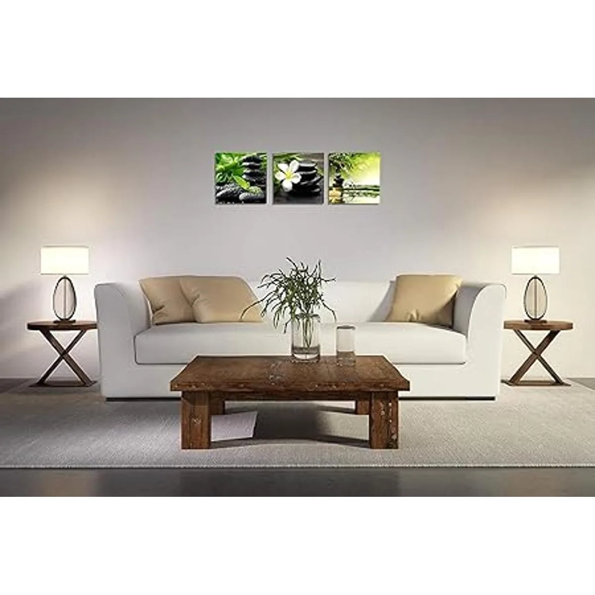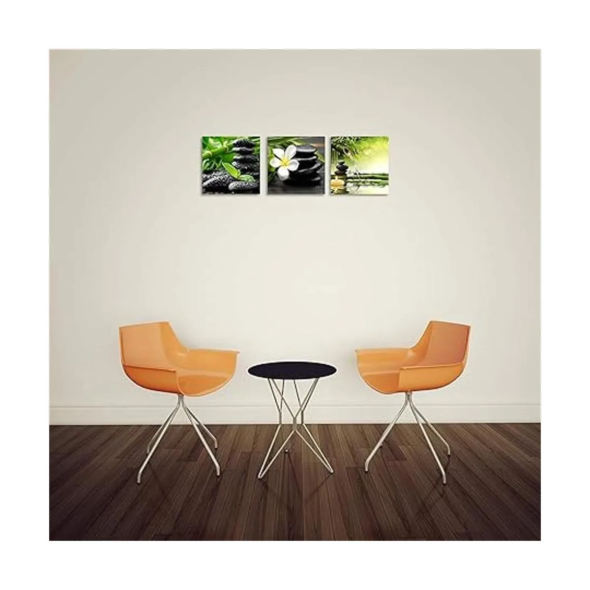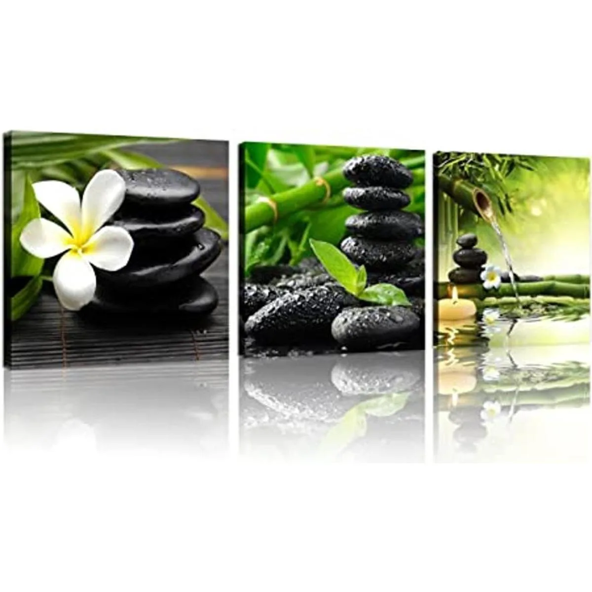 TutuBeer Lienzo Zen de 3 paneles, arte de pared con diseño de flores francangipani, color verde, bambú, blanco, impresiones sobre lienzo para decoración de pared en el hogar, oficina, cocina, estirado y enmarcado en cada panel, 12 x 12 pulgadas