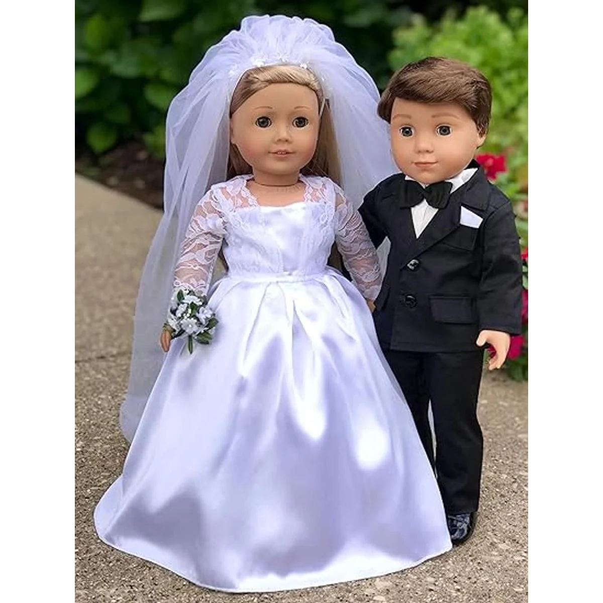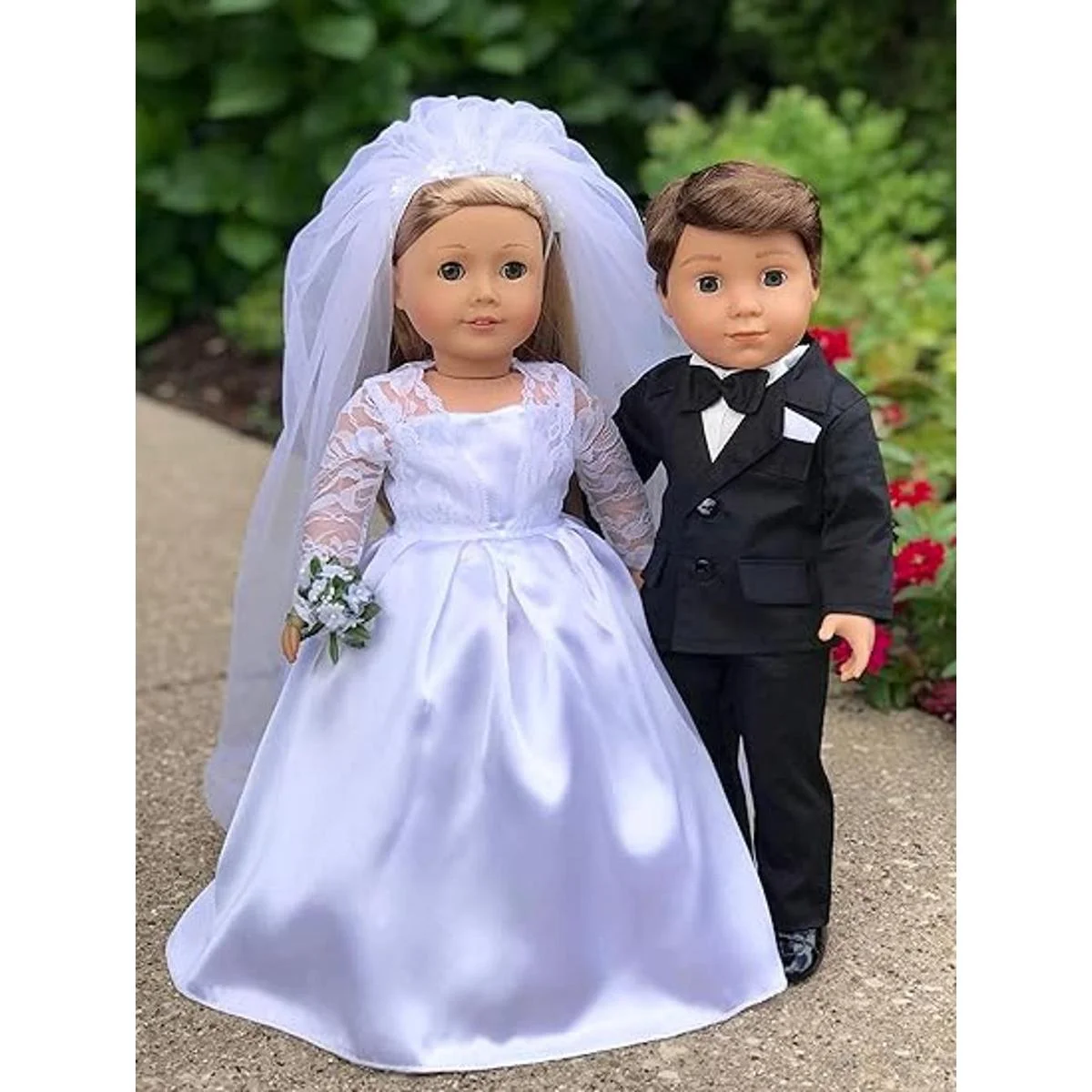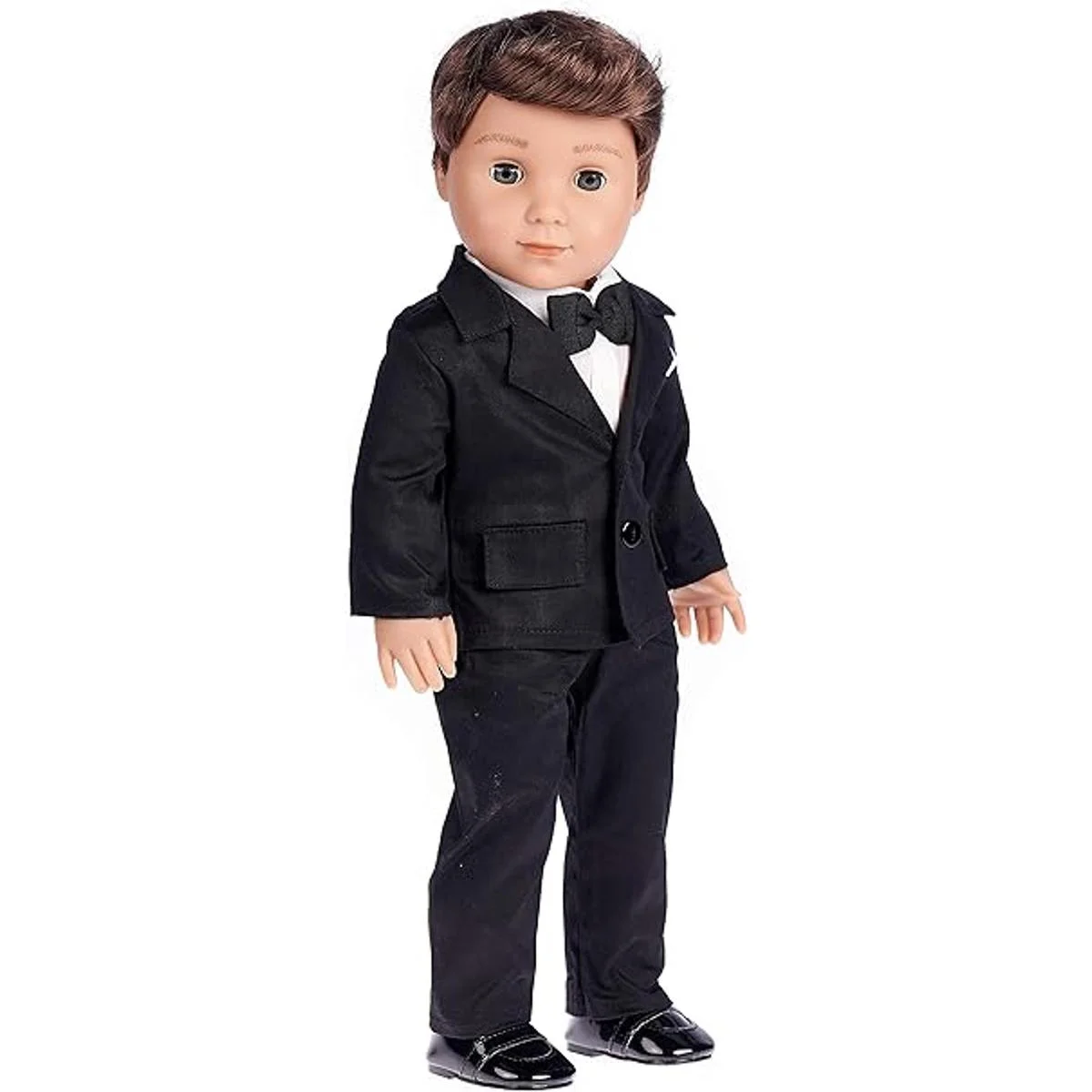 Tuxedo Juego de 5 piezas de tuxedo Ropa para muñeca americana de 18.0 in Chaqueta negra, pantalones, cinturón, camisa blanca y zapatos de vestir tallas no incluidas