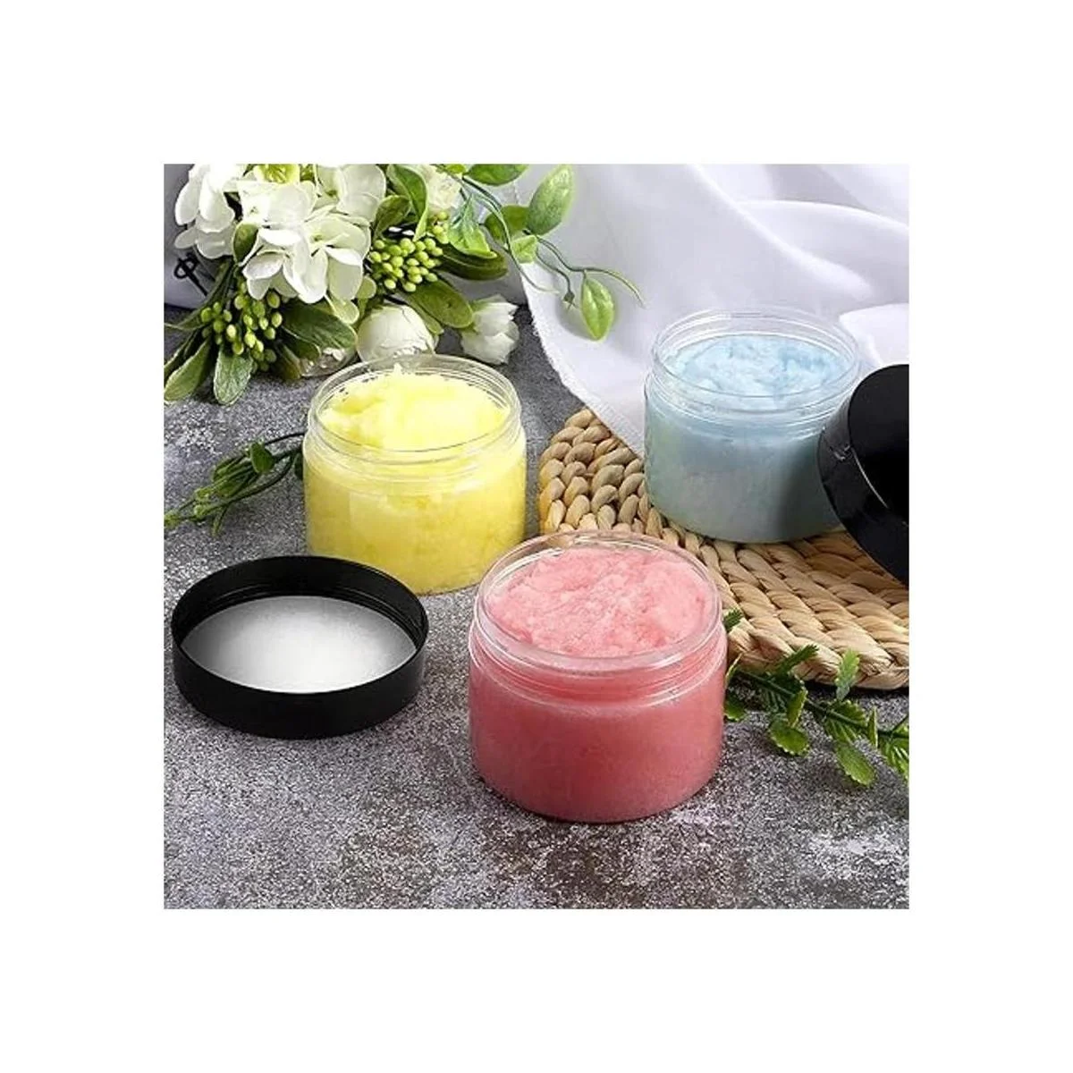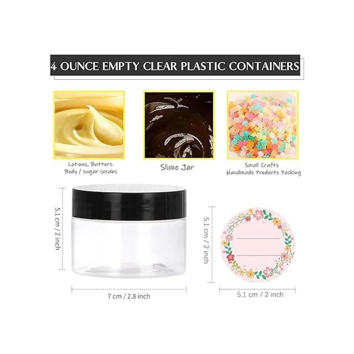Tamaño perfecto: 4 fl. Recipientes vacíos: diámetro de 2.8 in, altura de 2.0 in. Estos recipientes encajarán perfectamente en tu bolso, almacenados o mostrados en un estante, perfectos para productos promocionales y reventa de artículos, estos recipientes son elegantes y atractivos