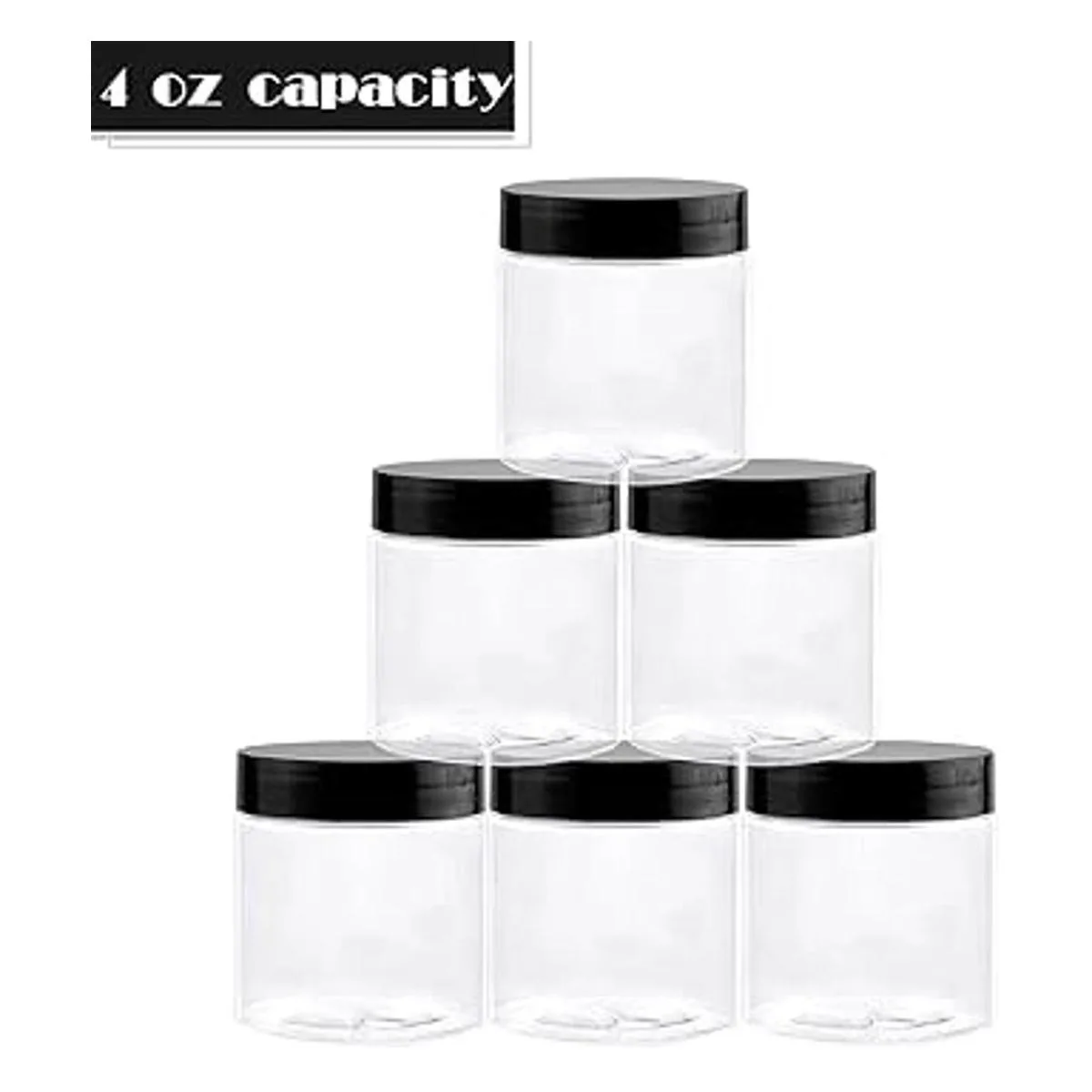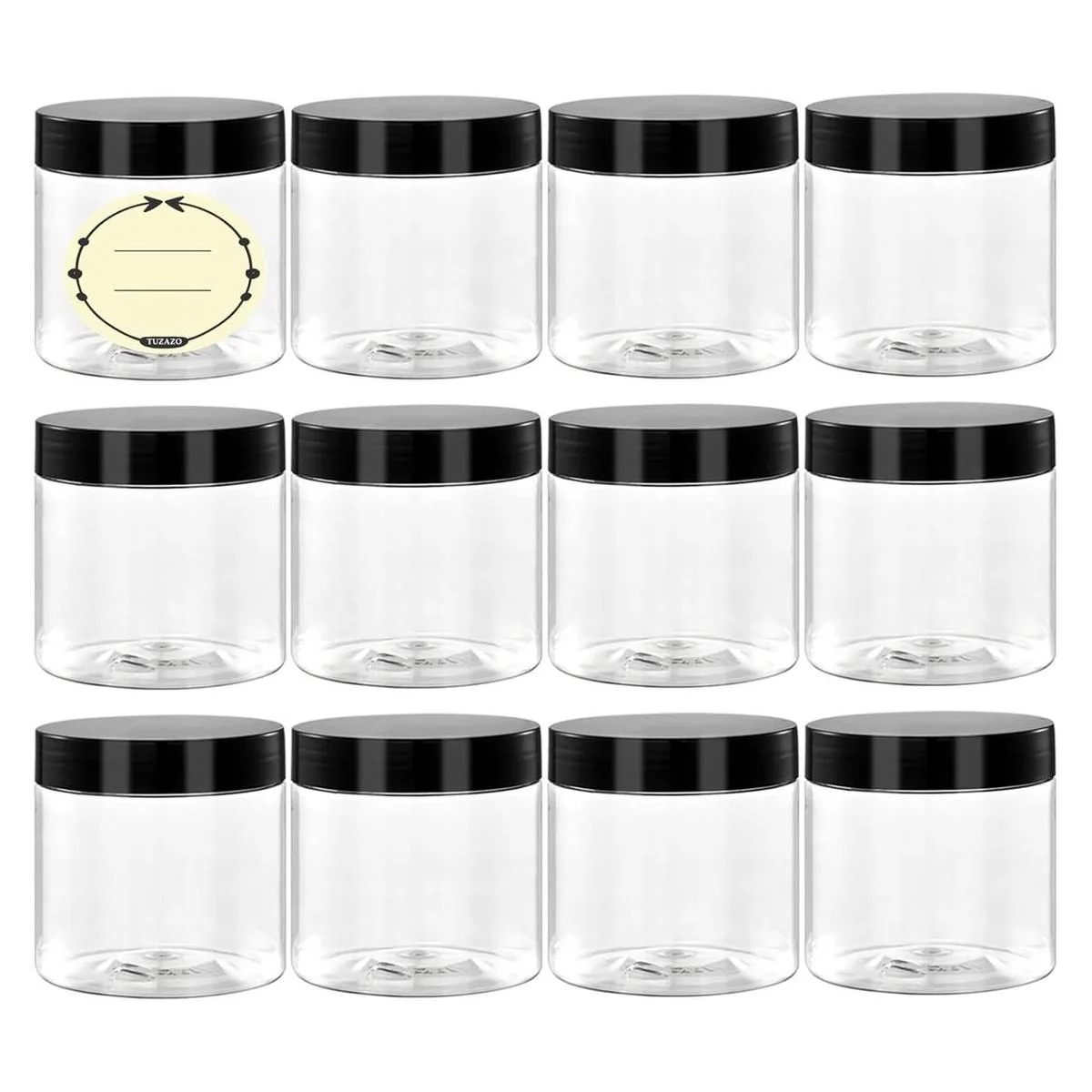 TUZAZO Recipientes de plástico de 4 onzas con tapas y etiquetas sin bisfenol A, tarros de plástico redondos de 4 onzas con tapas para cosméticos, lociones, mantequilla corporal, limo y productos de belleza paquete de 12