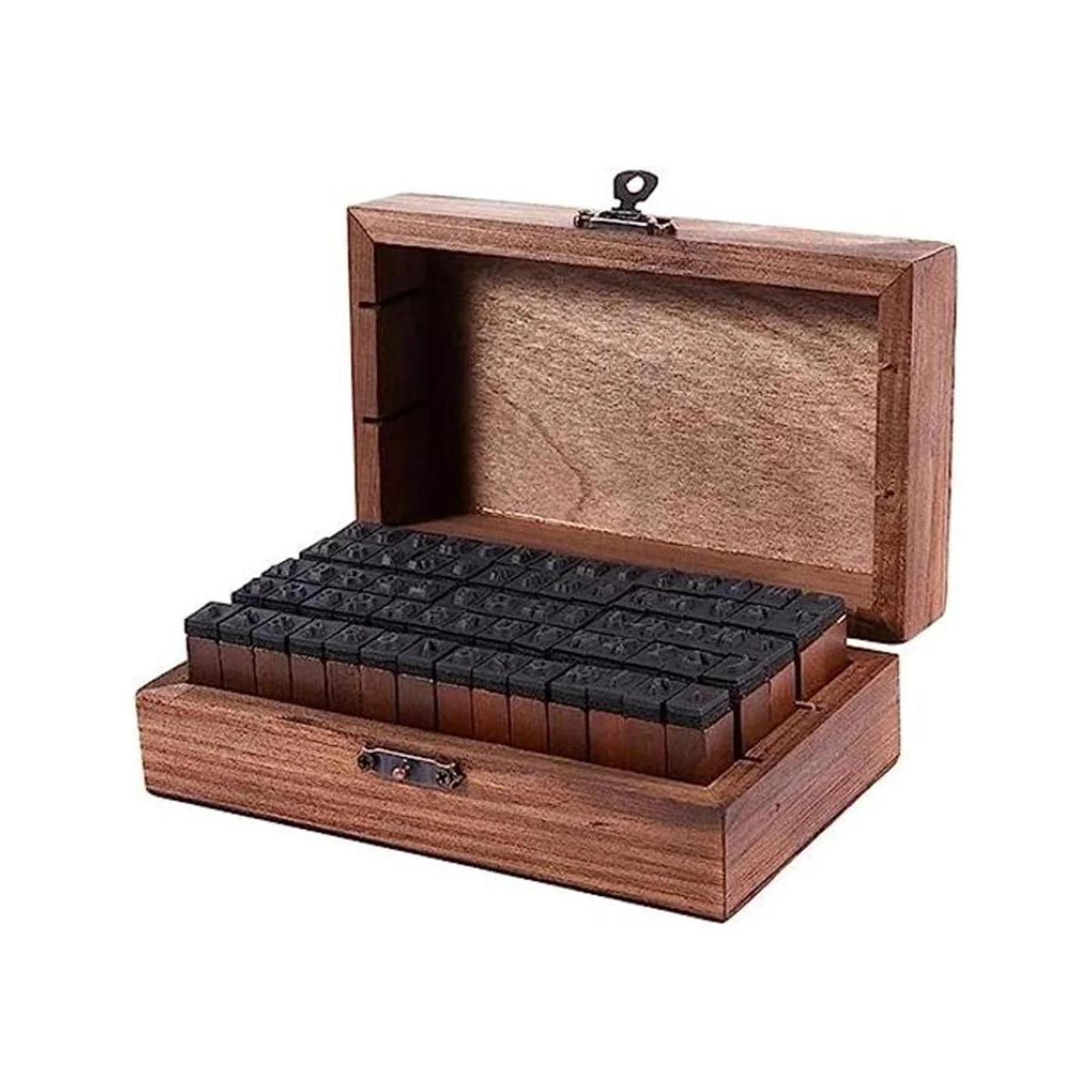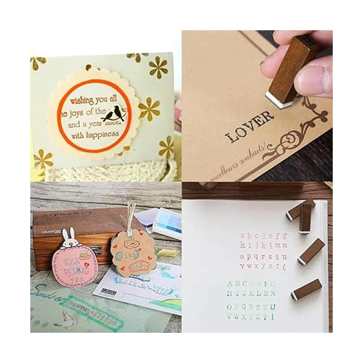 Tvoip 70 sellos de alfabeto de madera, letras decorativas de goma de la A a la Z letras de 0 a 9 números símbolos de sellos con caja de madera para manualidades, tarjetas, álbumes de recortes, hacer pintura enseñanza