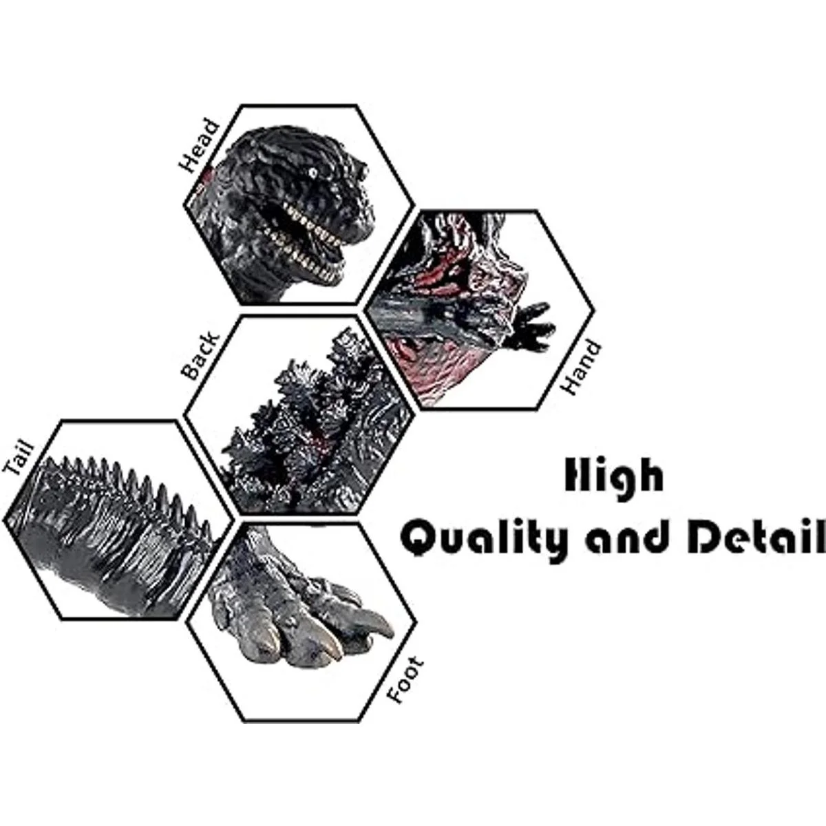 Godzilla mide 6.5 pulgadas 16.5 cm de alto y 11 pulgadas 27.9 cm de largo
