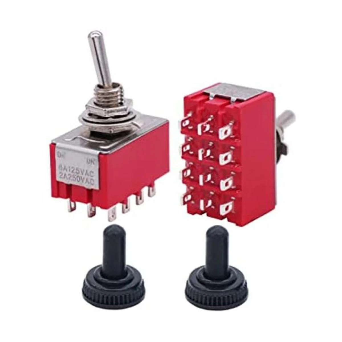 Twidec 2 interruptores de palanca mini 4PDT de 2 posiciones, 12 pines ONON, interruptor de palanca en miniatura de CA 6A125V 2A250V con tapa impermeable MTS402MZ