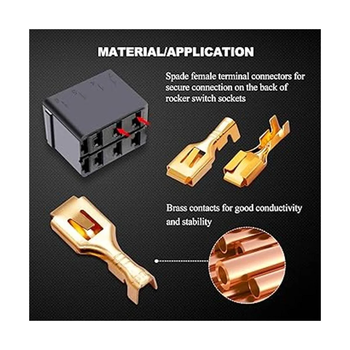 Los conectores de pala hembra son fáciles de usar e inspeccionar. Simplemente engarza y/o suelda a tus cables y cubra con un bonito termorretráctil de alta calidad para una conexión limpia, sólida y profesional.