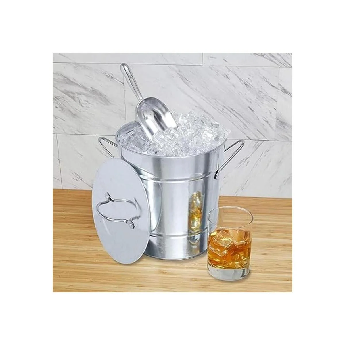 Incluye cuchara de hielo de acero inoxidable: la práctica cuchara cuelga en un gancho en el lateral del cubo, lo que hace que este cubo de hielo sea el complemento perfecto para tu carrito de bar y accesorios de bar. Incluye una tapa y un inserto de plástico extraíble para mantener el hielo limpio y frío.