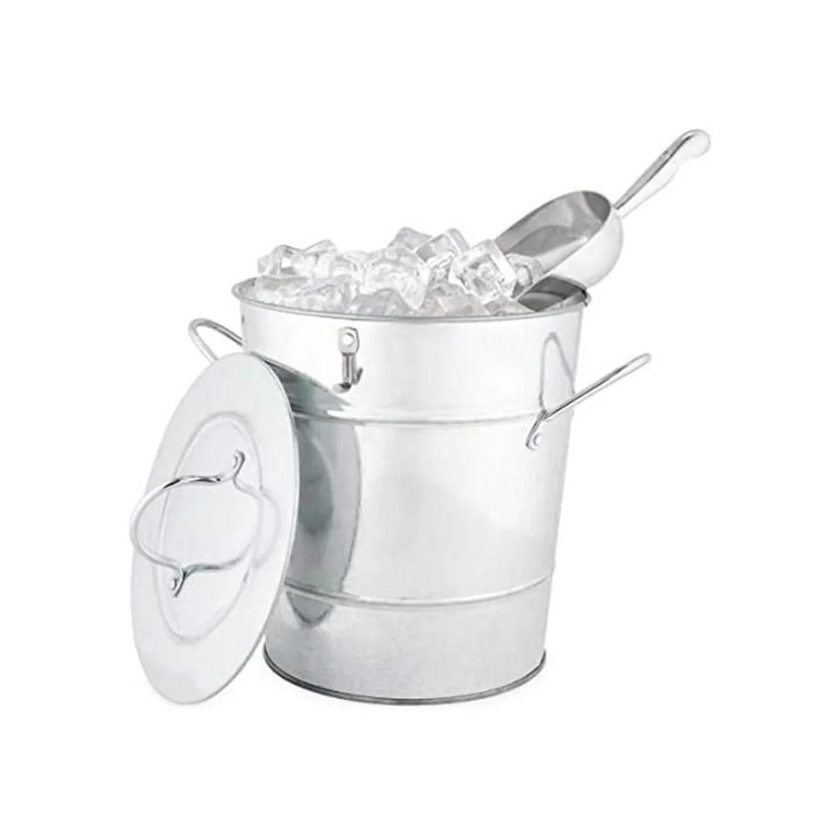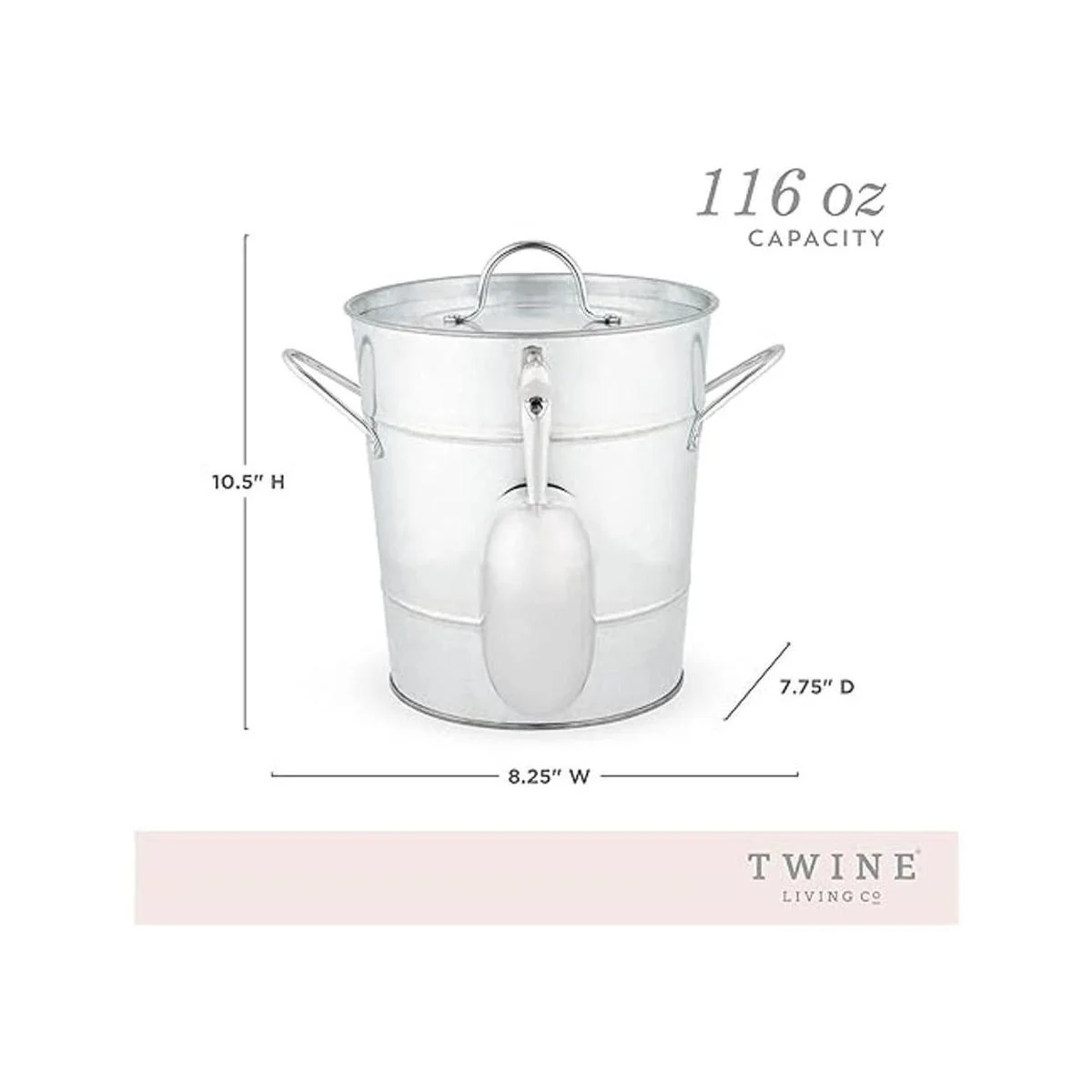 Twine Cubo de hielo con tapa y cuchara de hielo, bañera de metal galvanizado, enfriador de vino y cerveza, capacidad para 5.35 galones