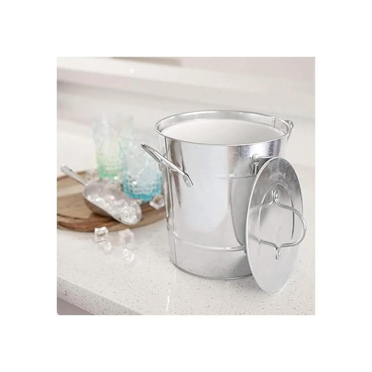 Cubo de hielo de metal clásico: este cubo de hielo de metal galvanizado se adapta a una amplia gama de decoración de cocina y hogar, desde granja moderna hasta contemporánea. Crea un hogar acogedor con un cubo de bebidas nostálgico que recuerda la era de las redes sociales de helados.