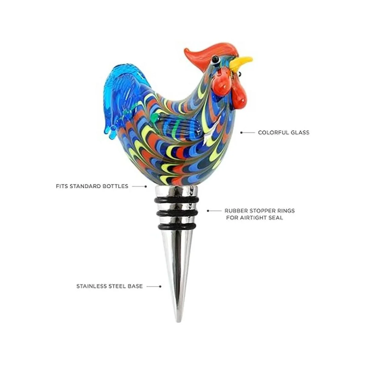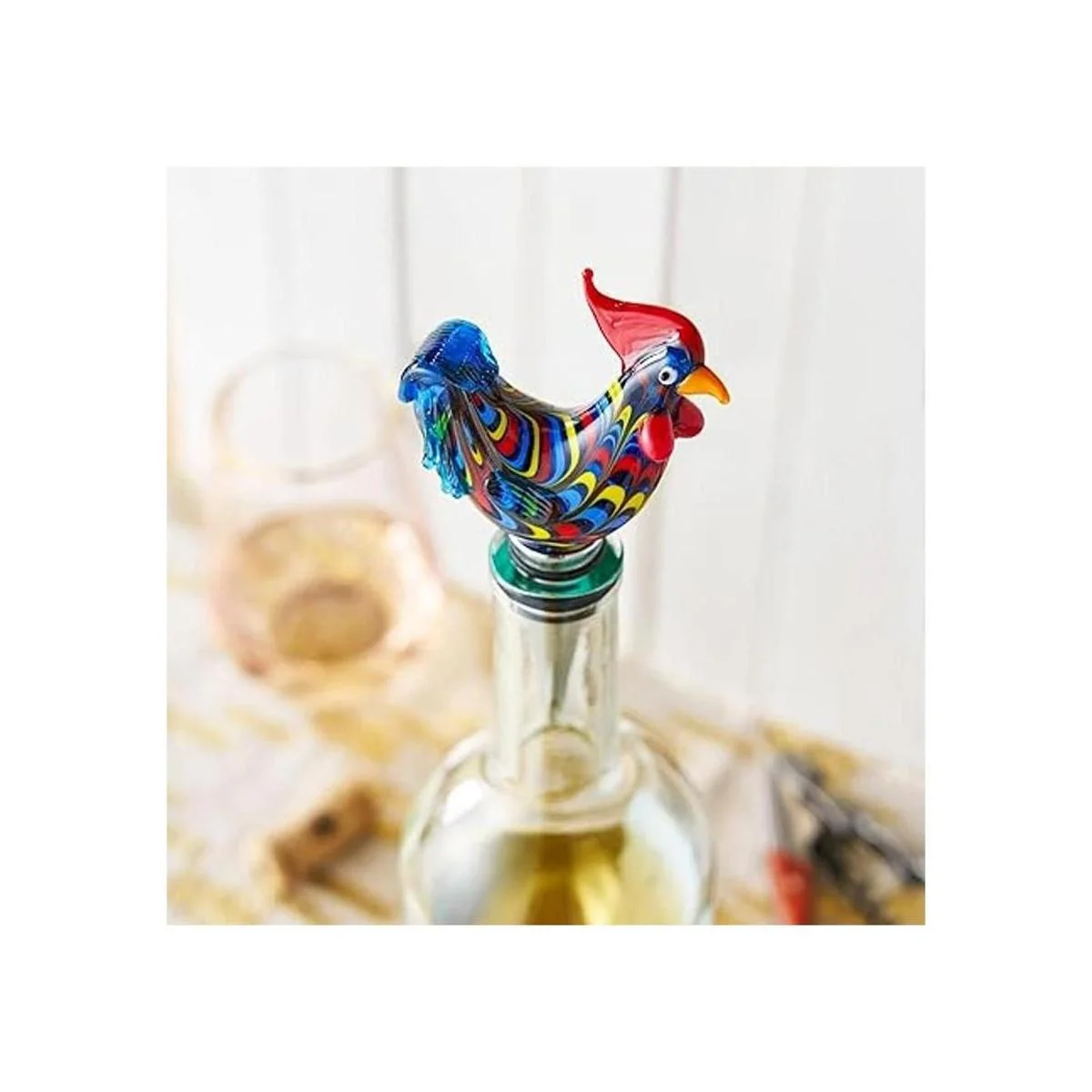 Acabado llamativo: este tapón de vino combina varios materiales para crear un tapón duradero; el gallo está hecho de cristal colorido, mientras que el tapón inclinado está hecho de metal con agarres de goma