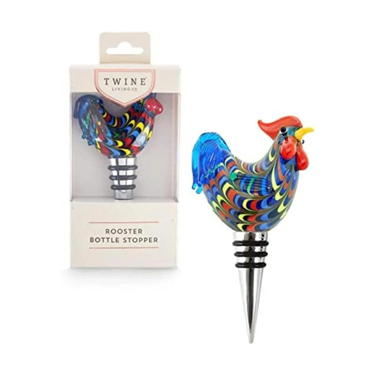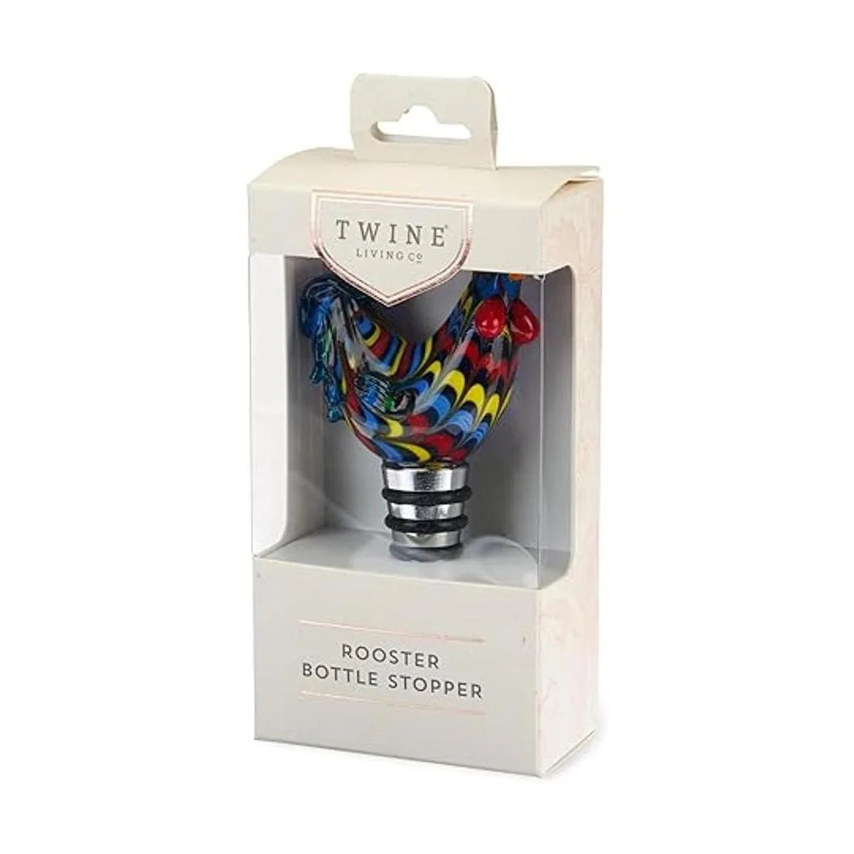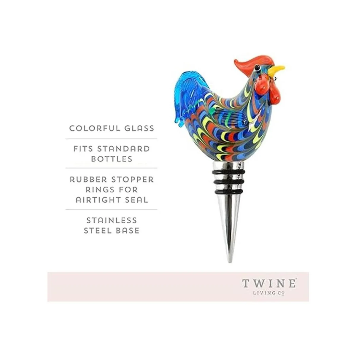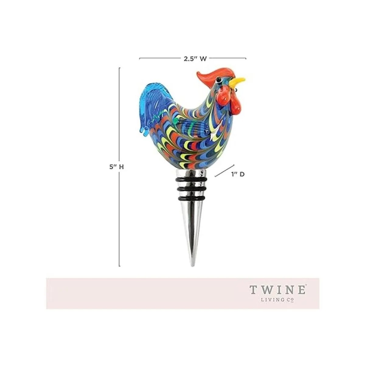 Twine Rooster, reutilizable y hermético tapón de botella para licor, bar, cocina, mantener el vino fresco, vidrio, 3.0 x 1.4 x 5.3 in, arco iris