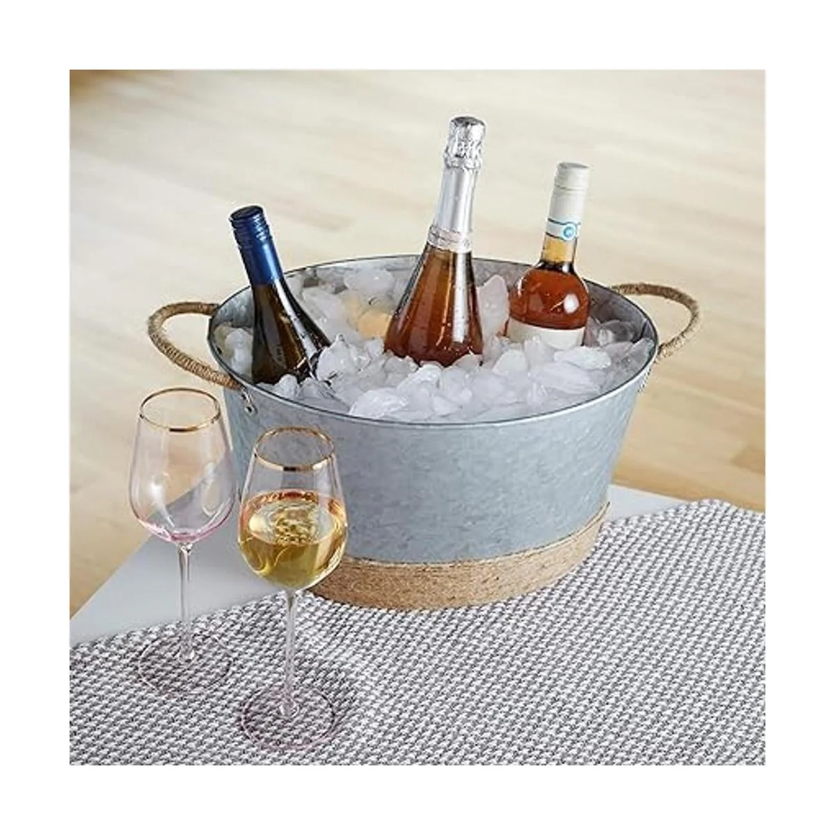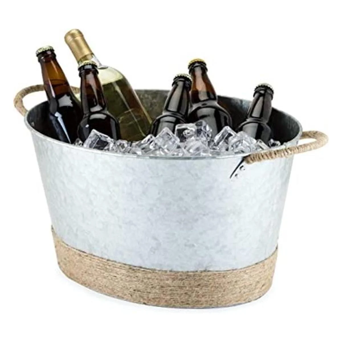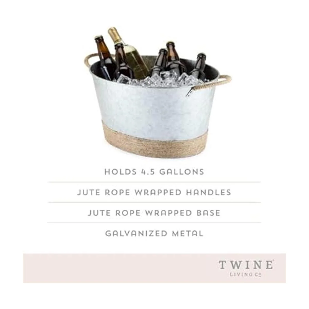 Twine Seaside Tubo de bebidas de metal de hielo galvanizado envuelto en cuerda de yute, vino, botella de cerveza, 4.5 galones