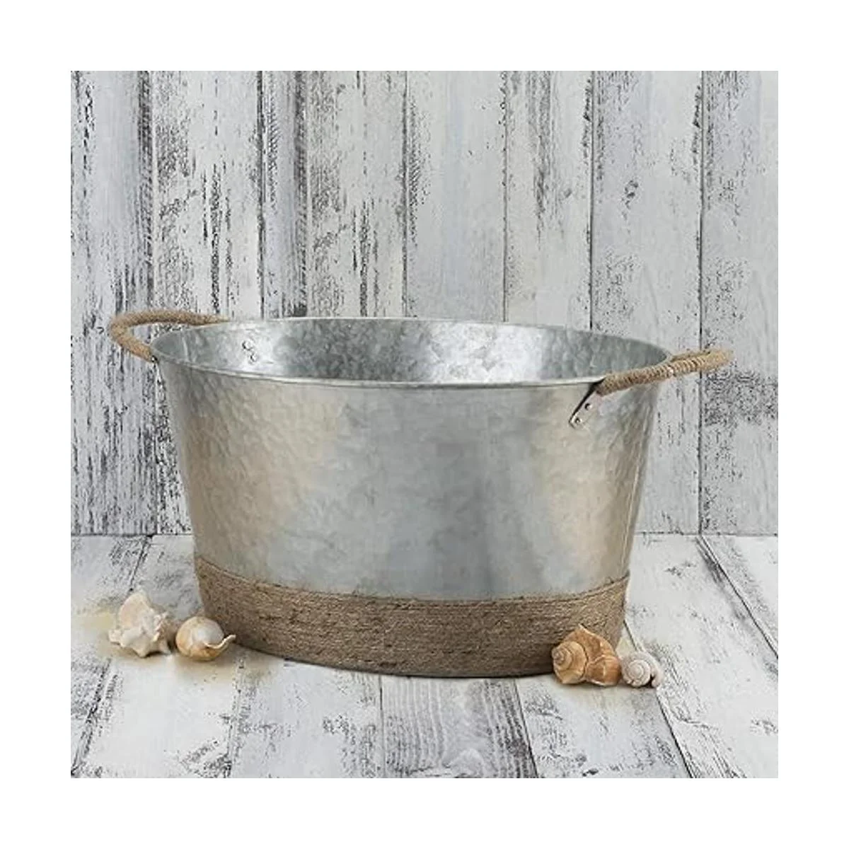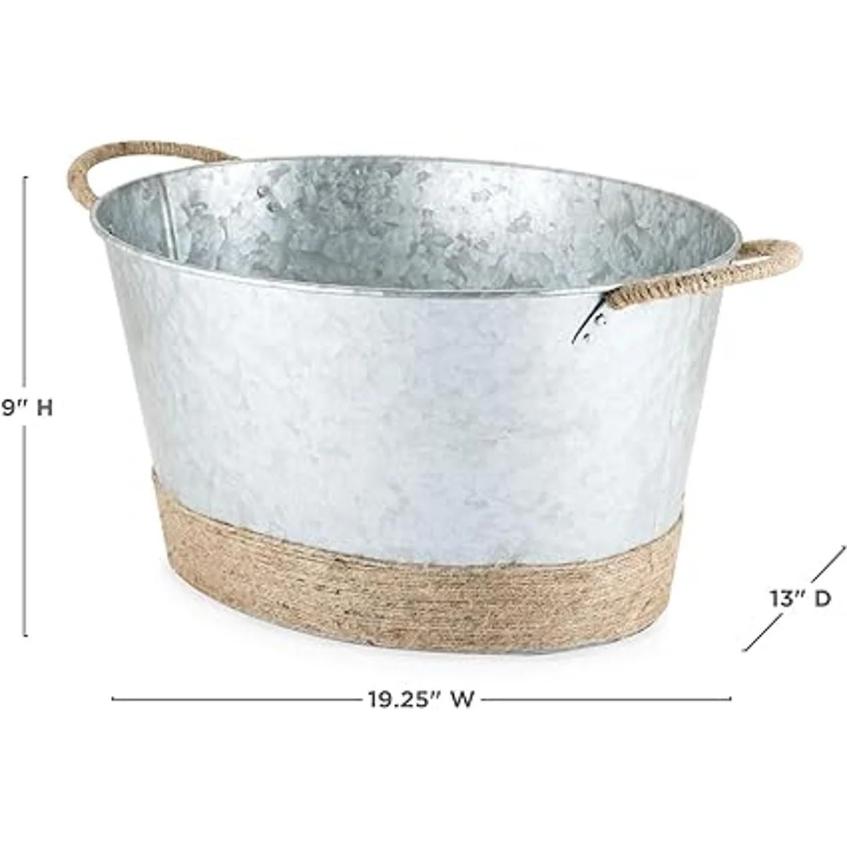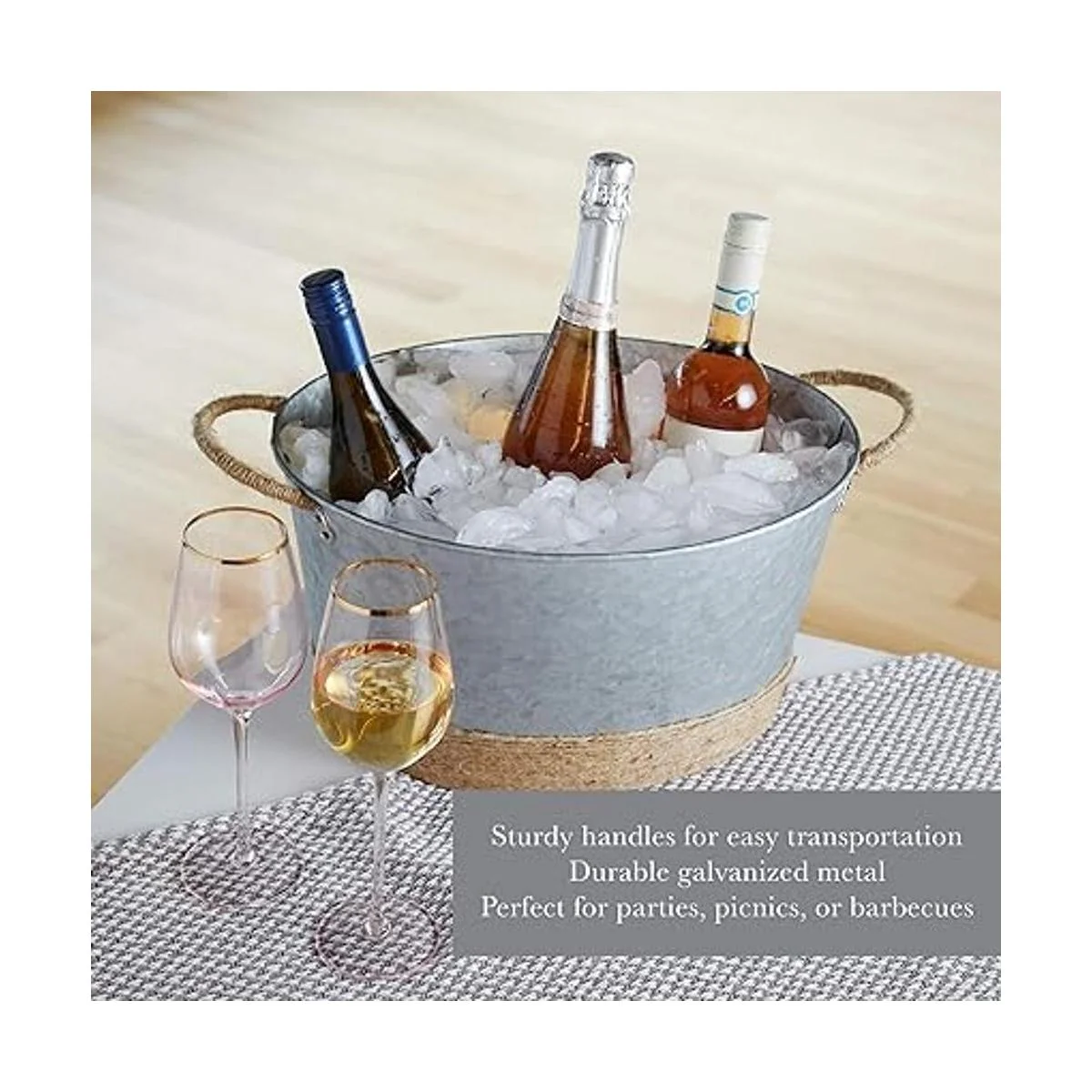 Twine Seaside Tubo de bebidas de metal de hielo galvanizado envuelto en cuerda de yute, vino, botella de cerveza, 4.5 galones