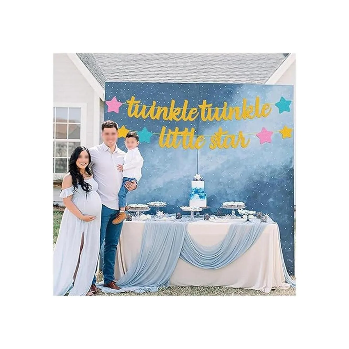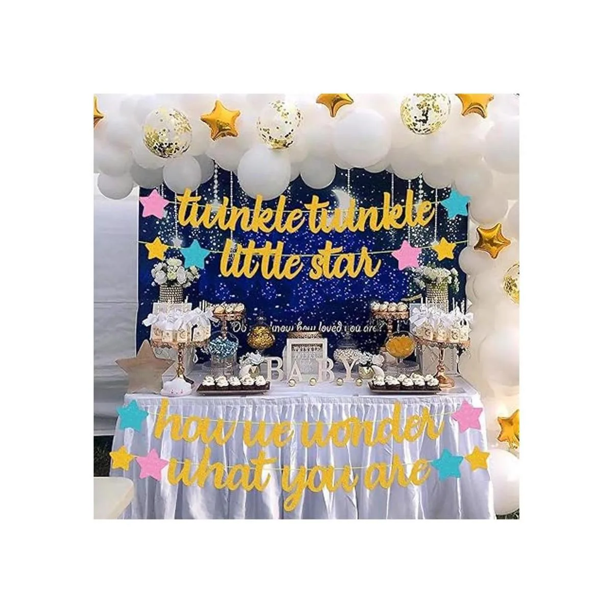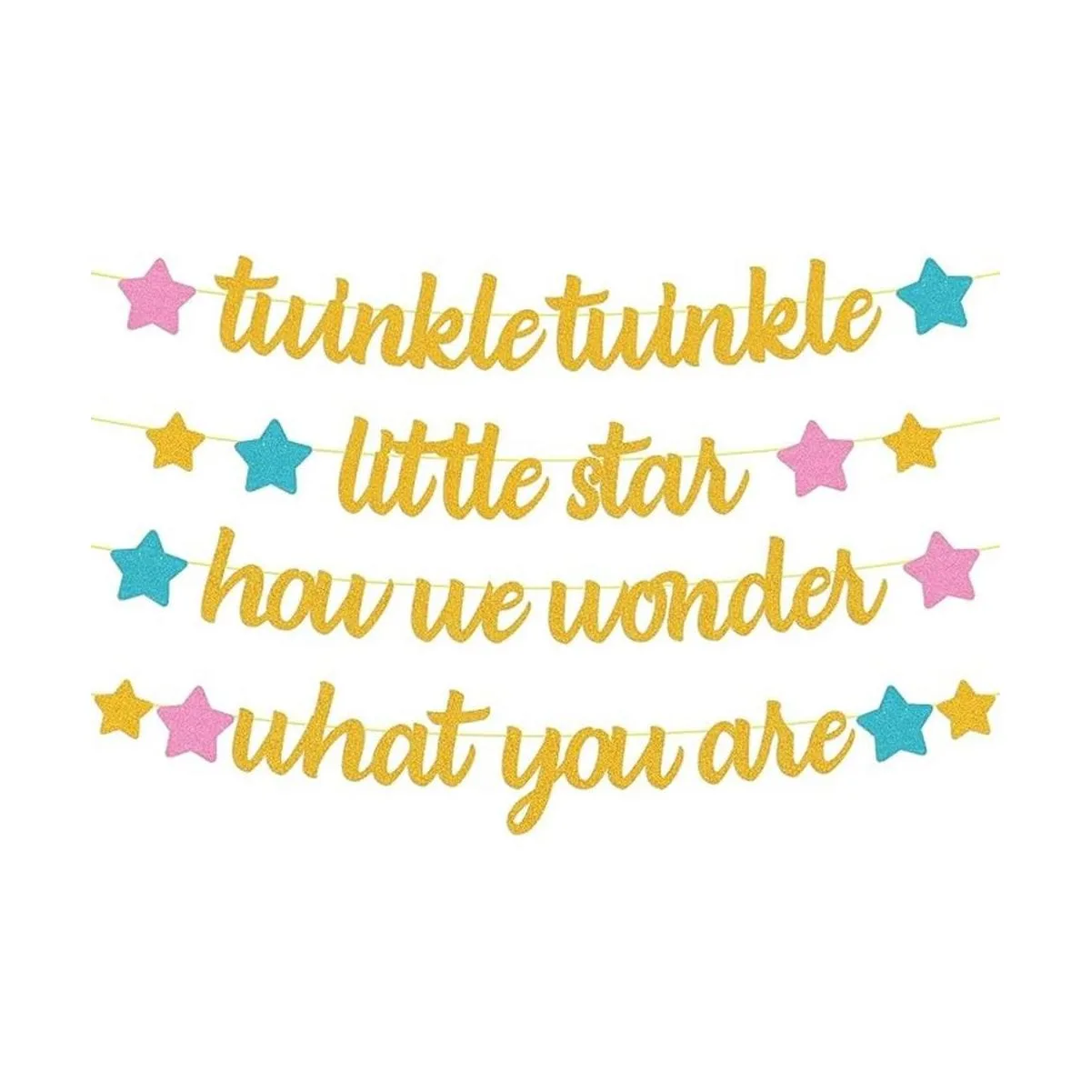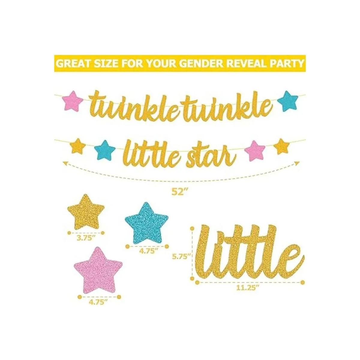 Twinkle Twinkle Little Star How We Wonder What You Are Banner Decoración de revelación de género, l o ella, rosa, azul, dorado, Star Baby Shower Suministros de fiesta con purpurina preencordada