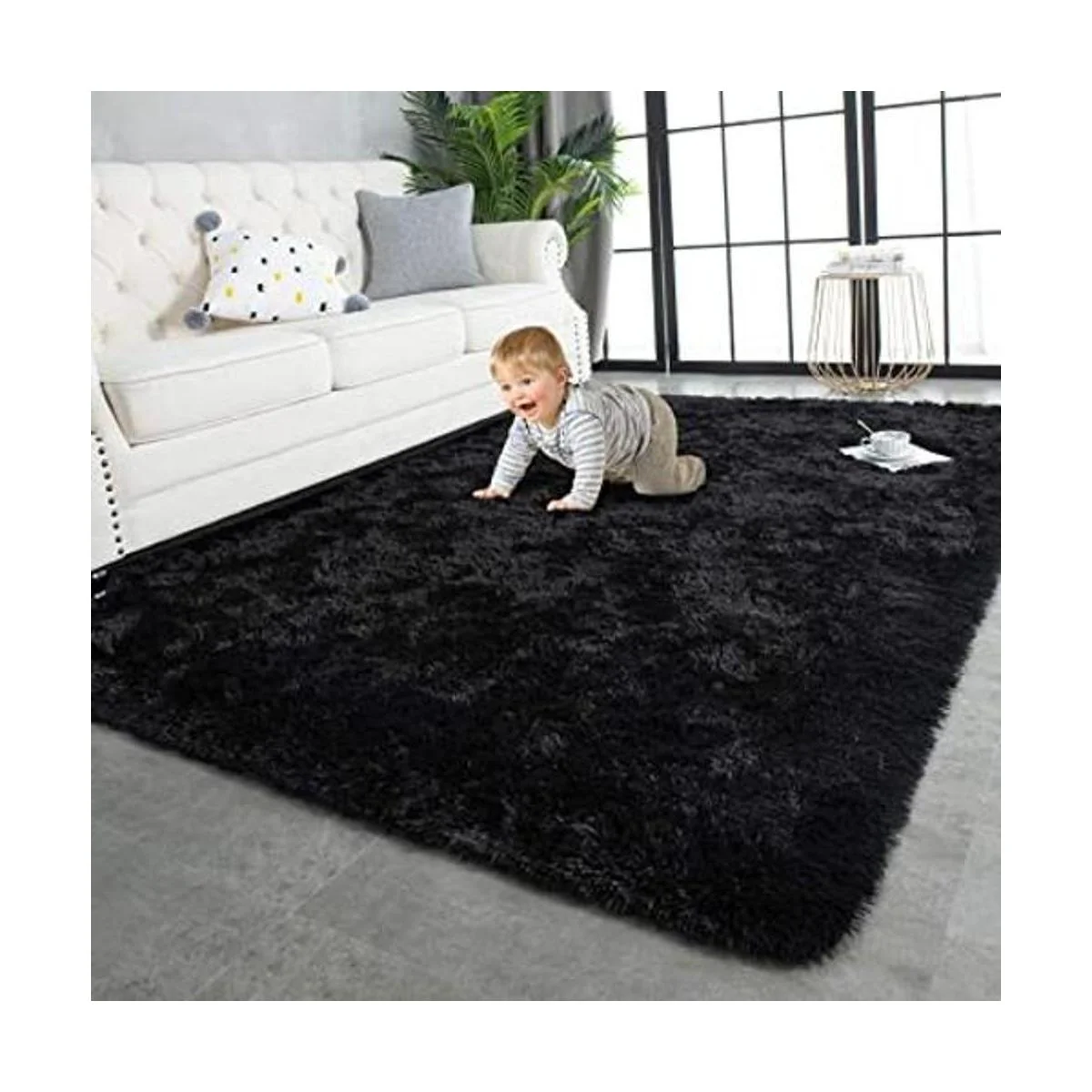TWINNIS Alfombras muy suaves de pelo largo mullida para interiores de 5 x 8 pies. Modernas alfombras de áreas de felpa para sala de estar, dormitorio, habitación de niños, habitación del bebé, decoración del hogar, alfombra mullida rectangular, duradera y mejorada con antideslizante, color negro