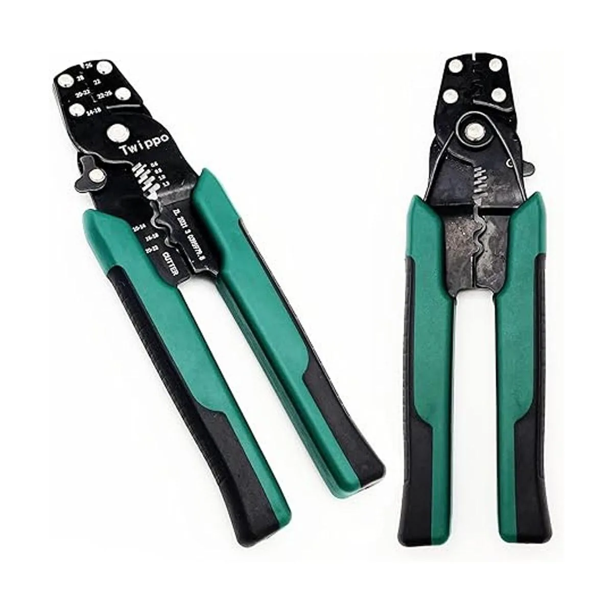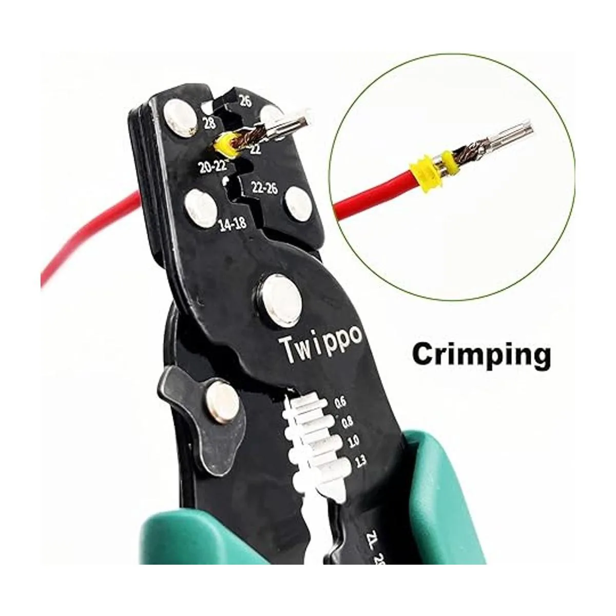 Twippo Herramienta de prensado, herramienta de prensado de cables con cortador de pelador, alicates de crimpado para terminales de barril abierto y conectores termorretráctiles, engarzado para 2610 AWG, pelado para 2216 AWG