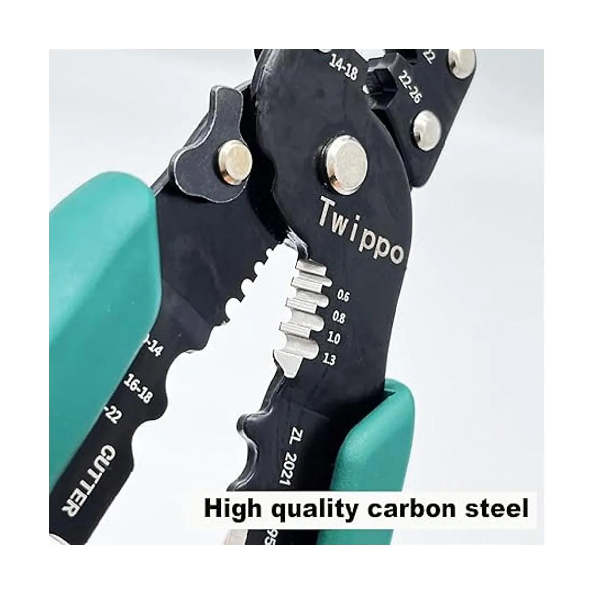 Lo que obtendrás: una herramienta de crimpado de alambre Twippo, forjada con acero al carbono de alta calidad, esta herramienta de crimpado de alambre tiene crimpado de grado profesional para un crimpado adecuado cada vez, es una herramienta de crimpado de barril abierto perfecta, pelacables y herramienta de crimpado de cables.
