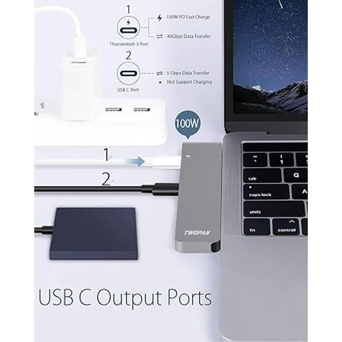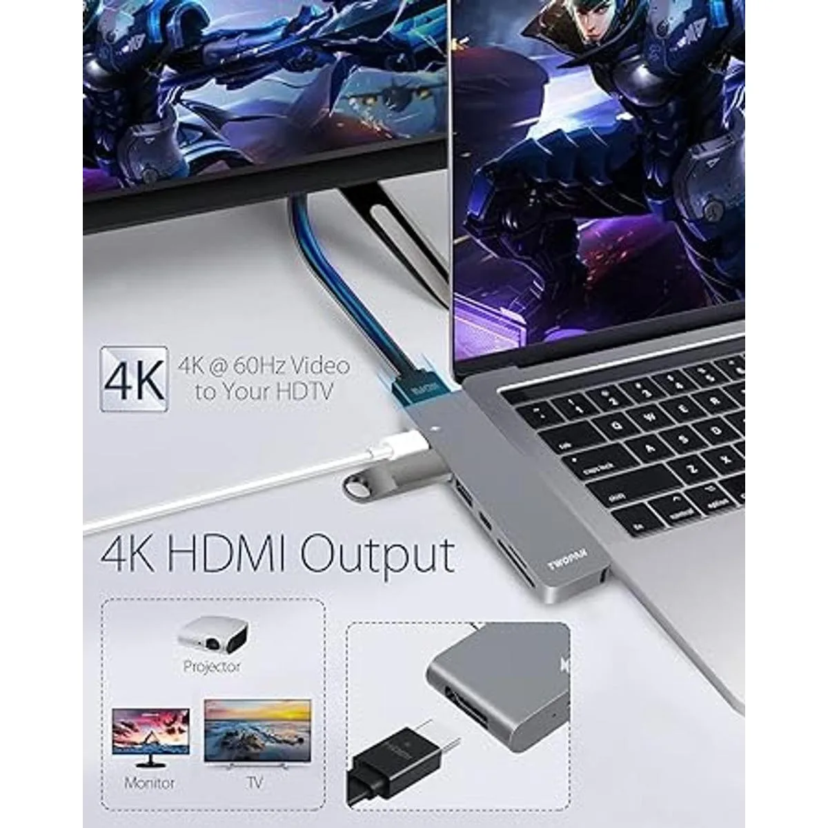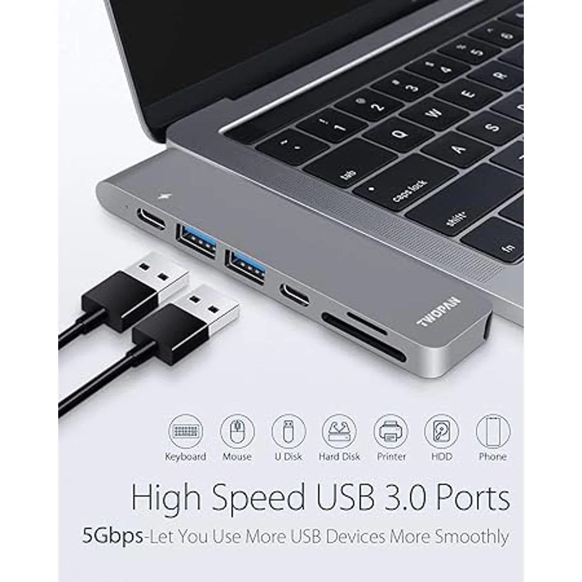 TWOPAN MacBook Pro Air Hub adaptador USB, 7 en 2, adaptador multipuerto USB 3.0, concentrador USB C con HDMI 4K, puerto Thunderbolt 3 PD, 2 puertos USB 3.0, lector de tarjetas SDTF para MacBook AirPro 202020192018, 13 pulgadas15 pulgadas