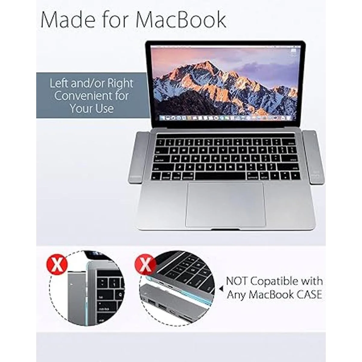 Hub USB C 7 en 2: hub todo en uno para satisfacer tus necesidades de oficina en casa. Extiende tus Macbooks 2 puertos en 2 puertos USB A, 1 puerto de datos USB C, 1 puerto Thunderbolt 3, 1 puerto HDMI, 1 ranura para tarjeta SD y 1 ranura para tarjeta micro SD No es compatible con ninguna funda