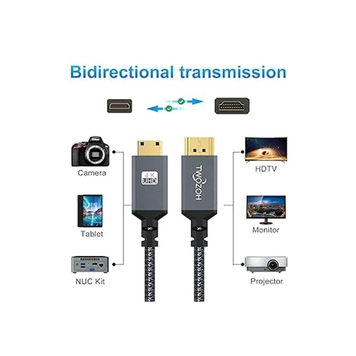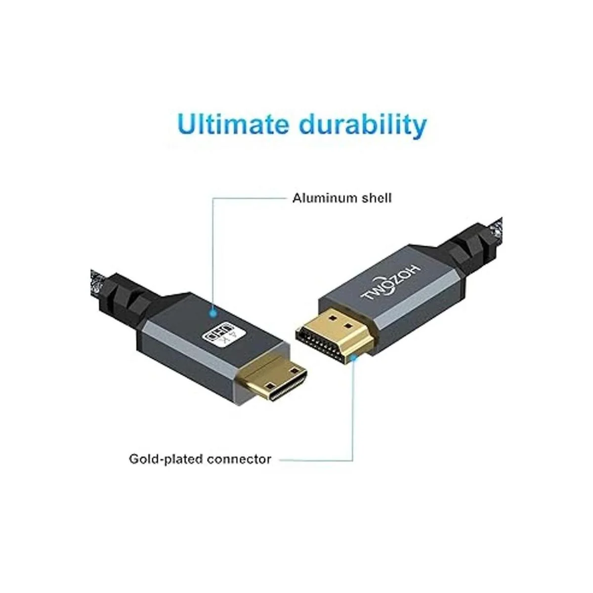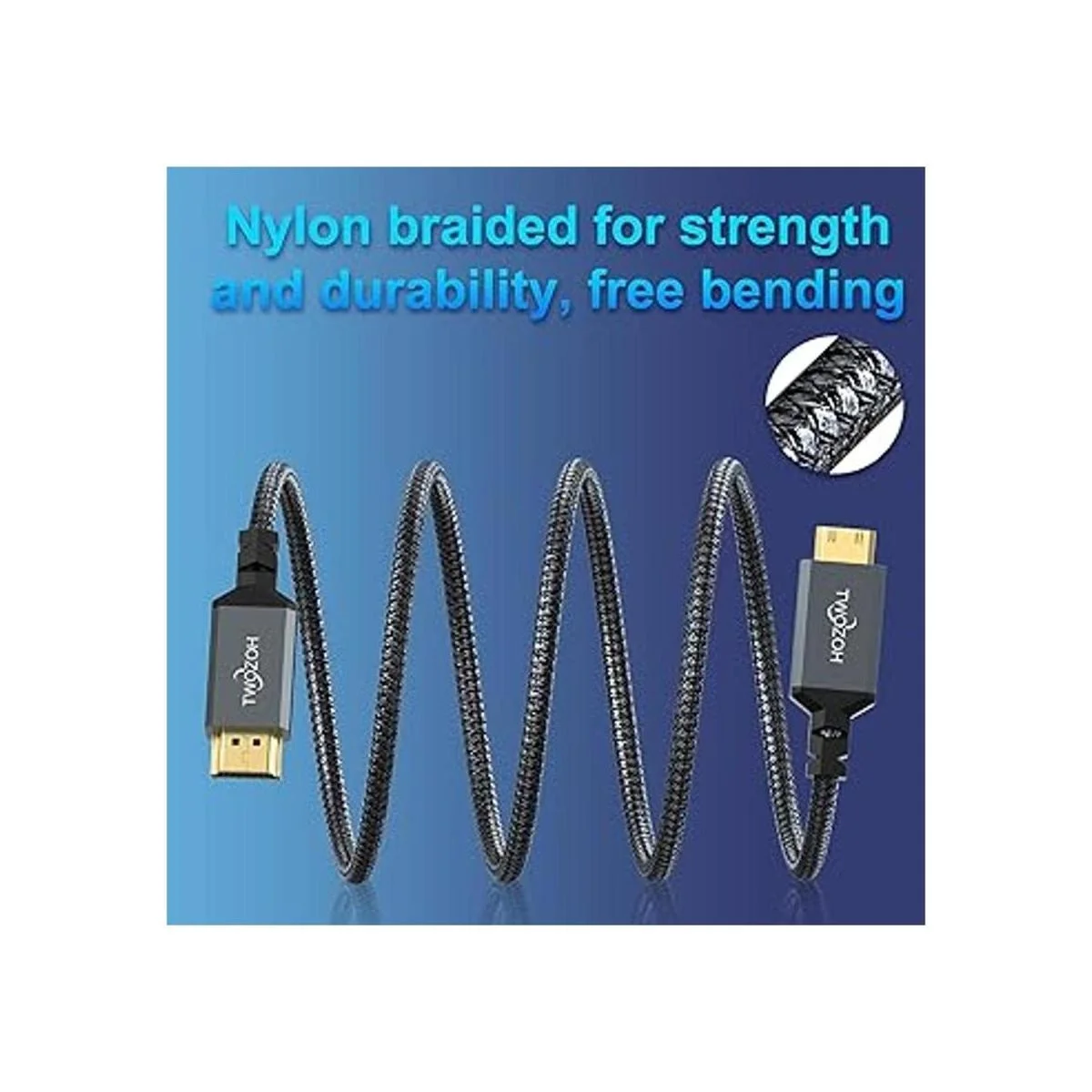 Twozoh Cable mini HDMI a HDMI de 3.3 pies, cable trenzado HDMI de alta velocidad a mini HDMI, compatible con 3D 4K60Hz 1080p 720p