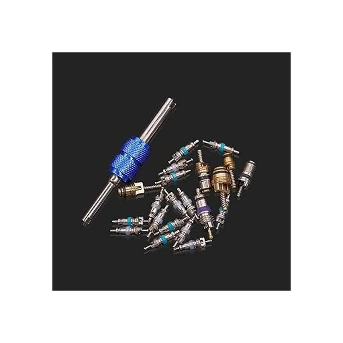 Introducción del producto: Kit surtido de herramientas de núcleo de válvula de aire acondicionado para coche con herramienta de extracción de núcleo de válvula.