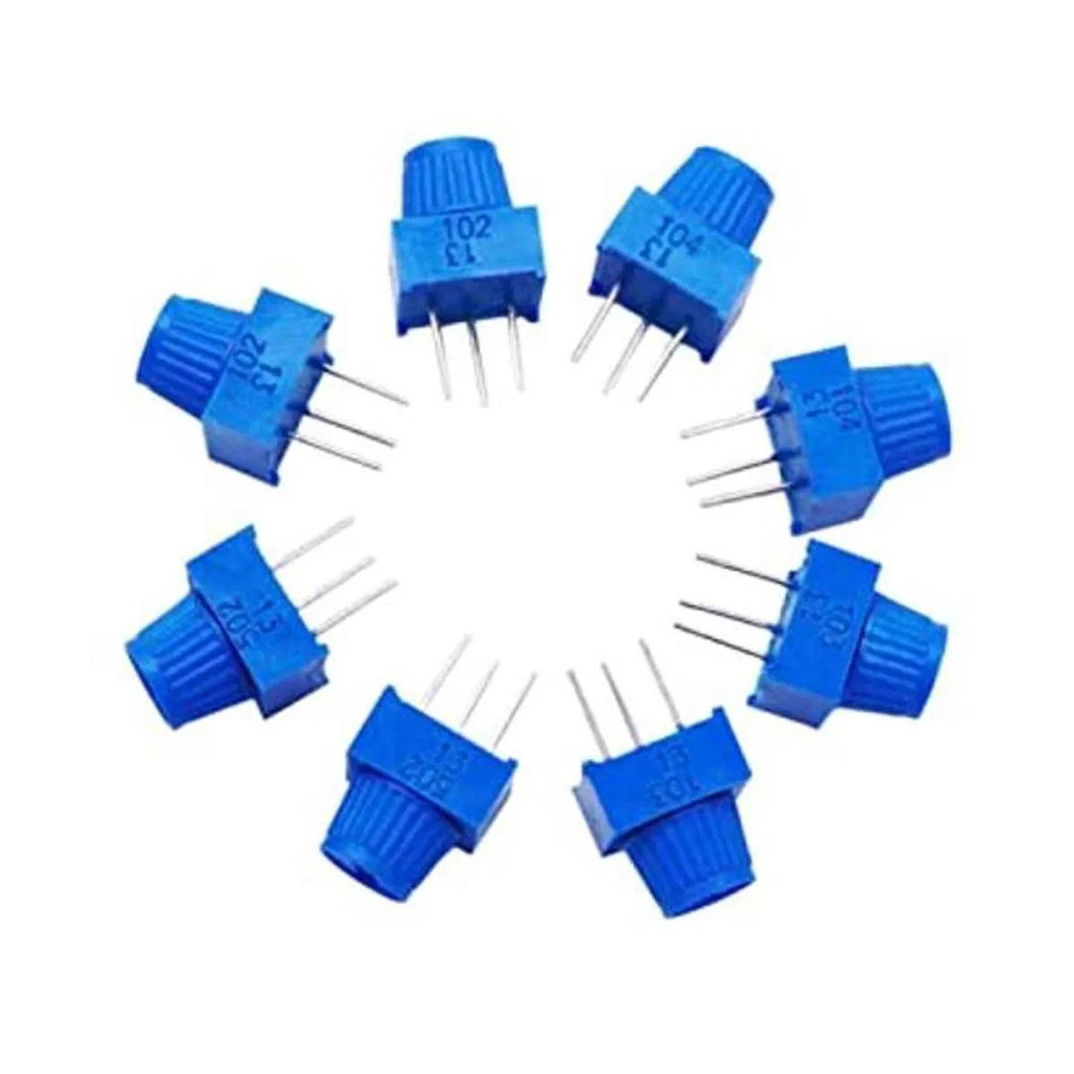 TWTADE 8 potenciómetro 3386p 1K 5K 10K 100K ohmios cada uno 2 kit de potenciómetro de moldura de tabla de pan con perilla