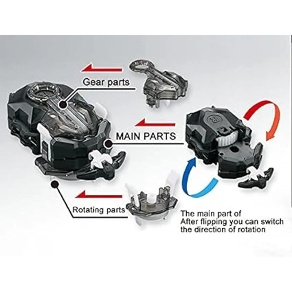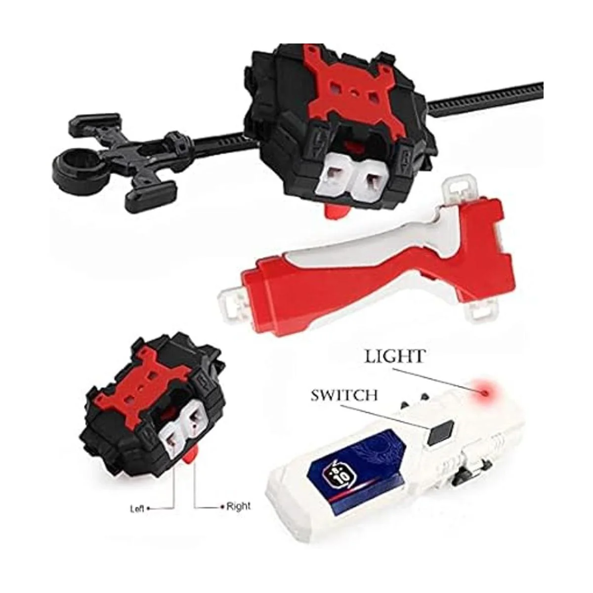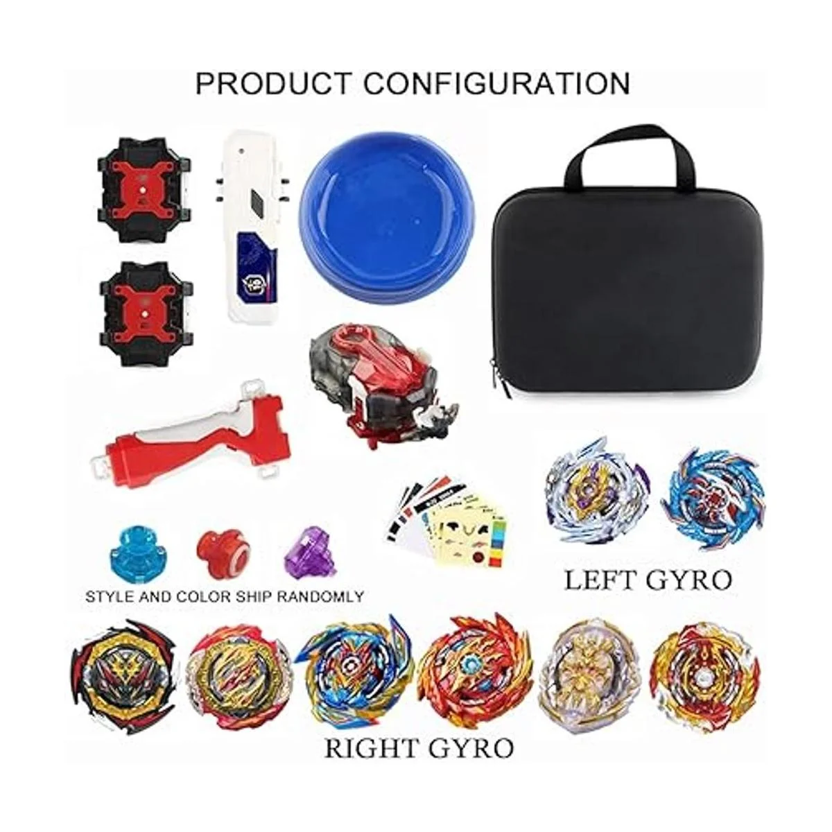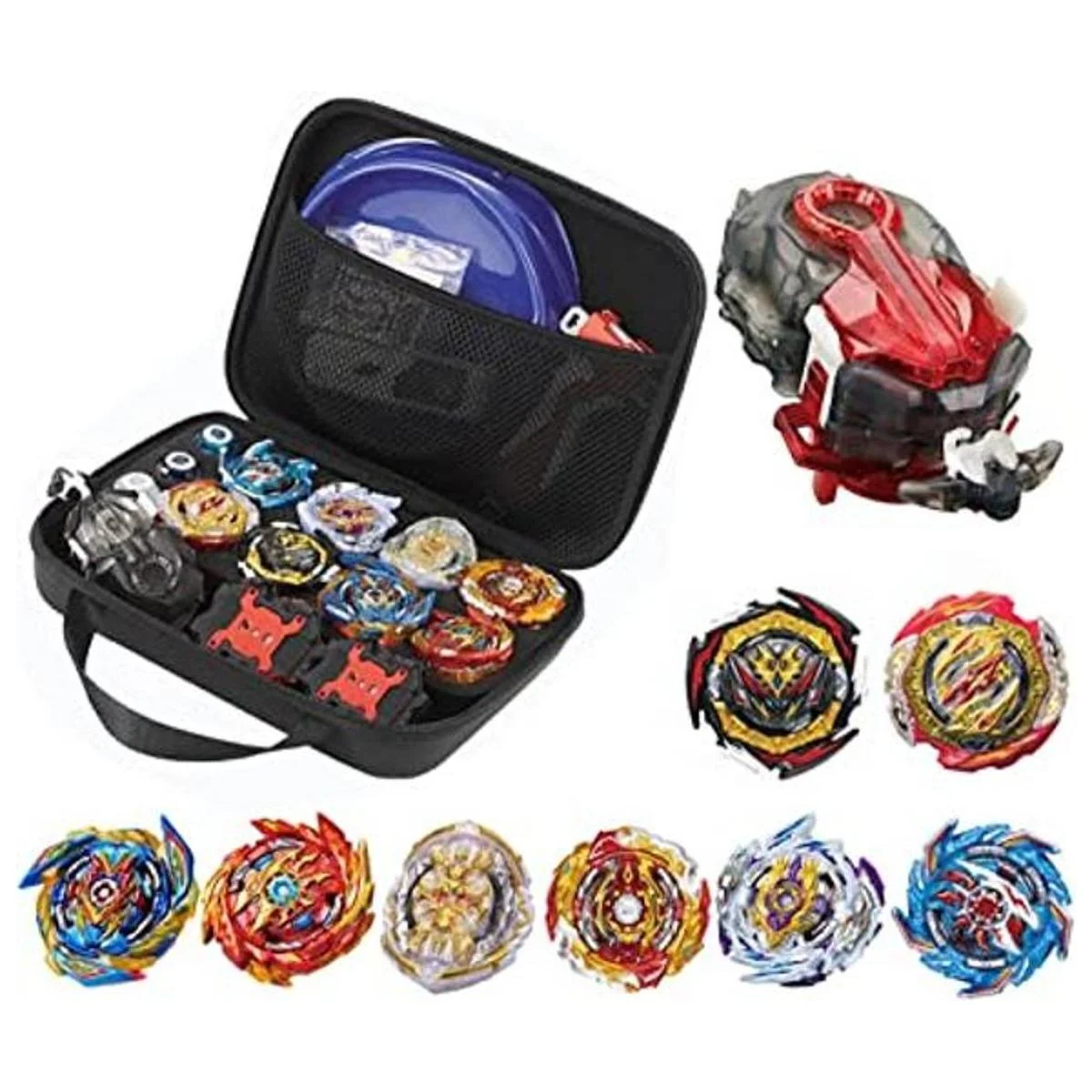 Twueivw Bey Burst Juego de juguetes de giroscopio de fusión de metal y agarre superior, caja de almacenamiento de juegos, 8 giroscopios de explosión superior, 3 lanzadores bidireccionales, gran regalo de cumpleaños para niños y niños