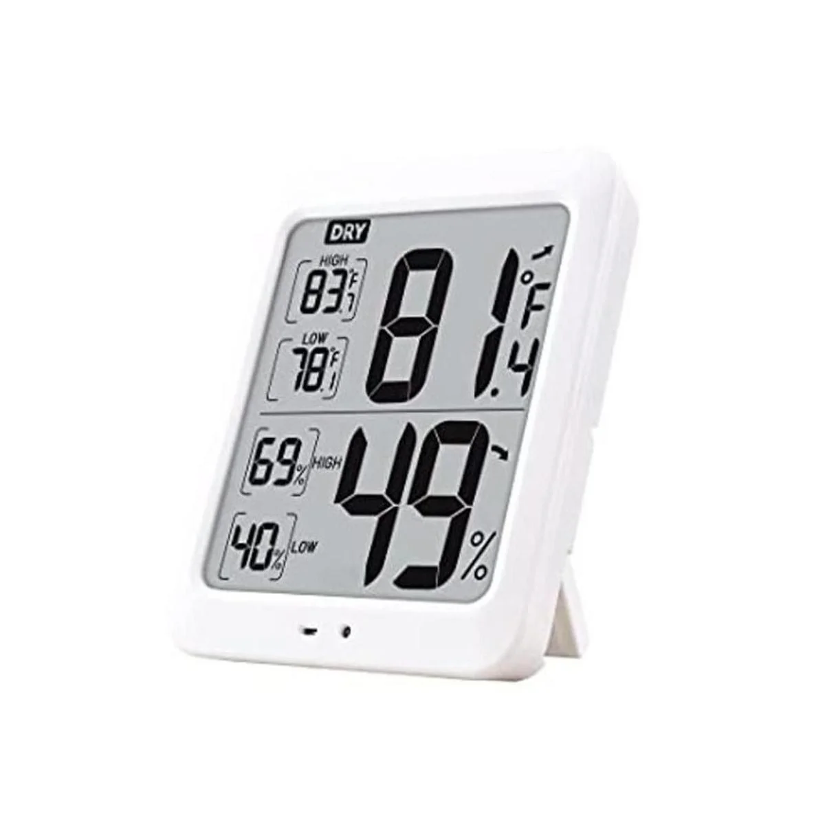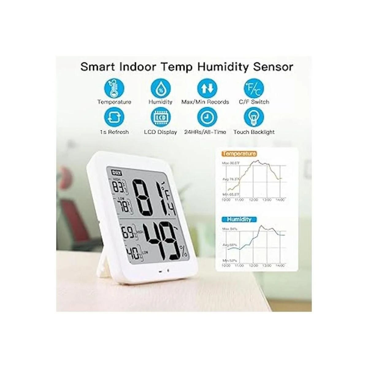Lecturas precisas: un sensor sensible en el dispositivo registra la temperatura y la humedad, 1 s de actualización rápida de sensibilidad, controlando la exactitud de la temperatura dentro de 35.6 F/ 5 F y precisión de humedad dentro de 5 RH; con luz LED, puedes ver los datos por la noche