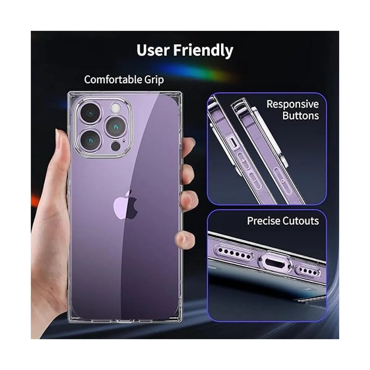 Protección de la cámara: esta funda con protector de cámara integrado, más segura que otras fundas transparentes, protege la lente de la cámara todo el tiempo, evita arañazos diarios o desgaste. Las incisiones precisas se pueden utilizar para tomar fotos sin bloquear la cámara.