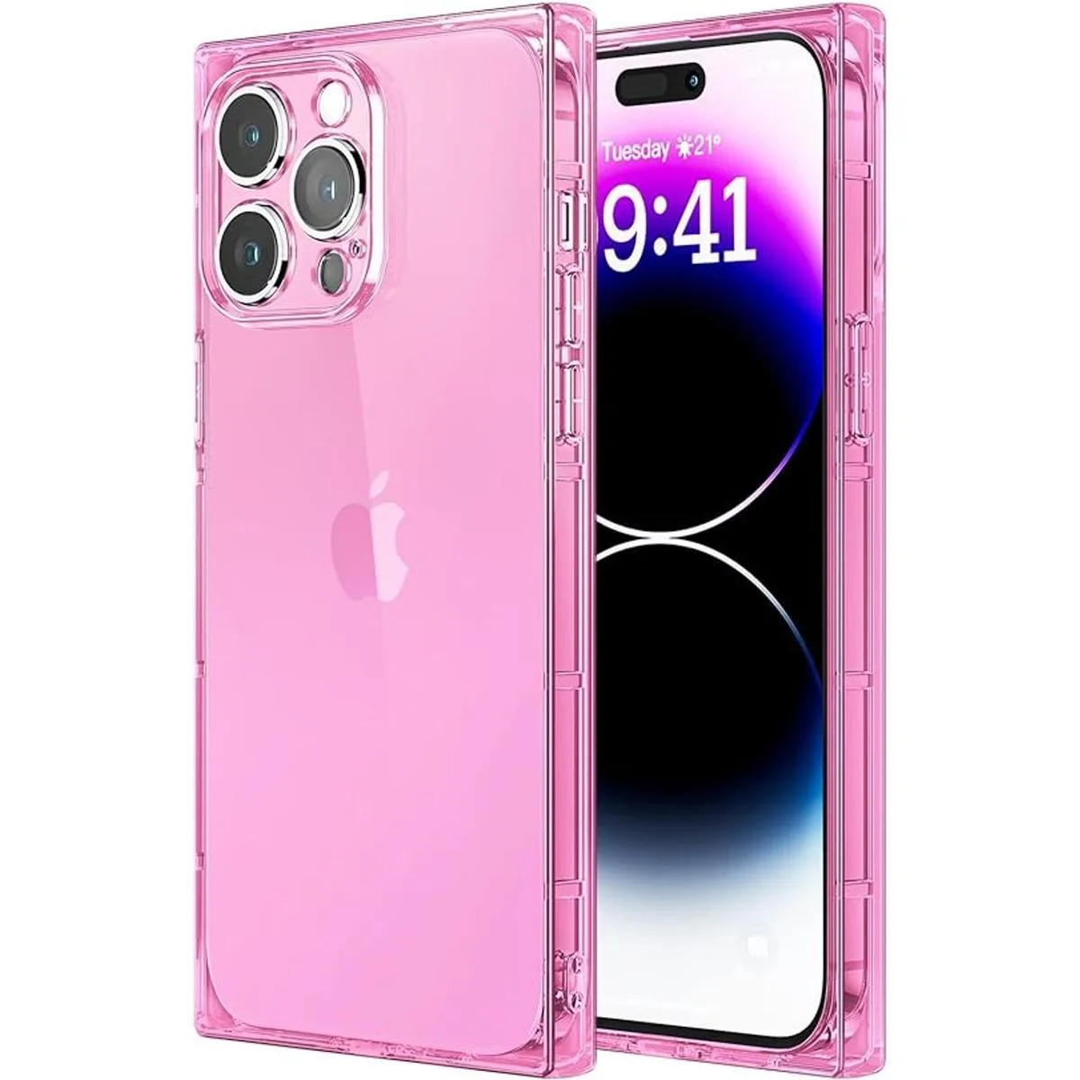 Tzomsze Funda cuadrada para iPhone 14 Pro Max de 6.7 pulgadas, funda transparente transparente transparente con esquinas reforzadas de poliuretano termoplástico, funda delgada de parachoques de absorción de golpes, fundas de silicona TPU 2022, color rosa