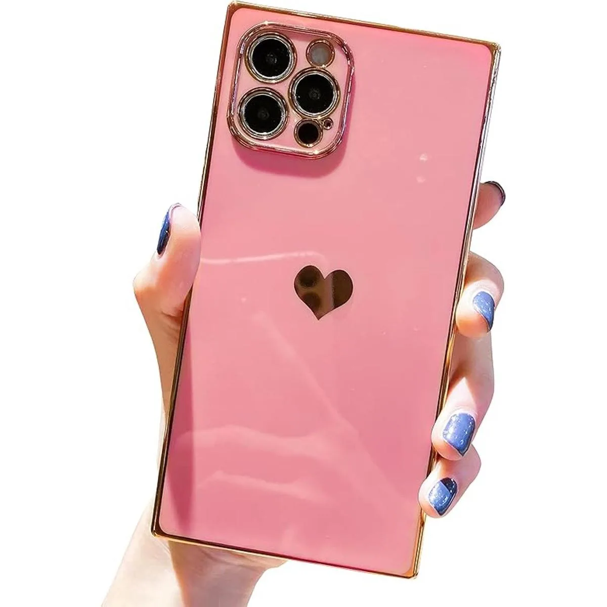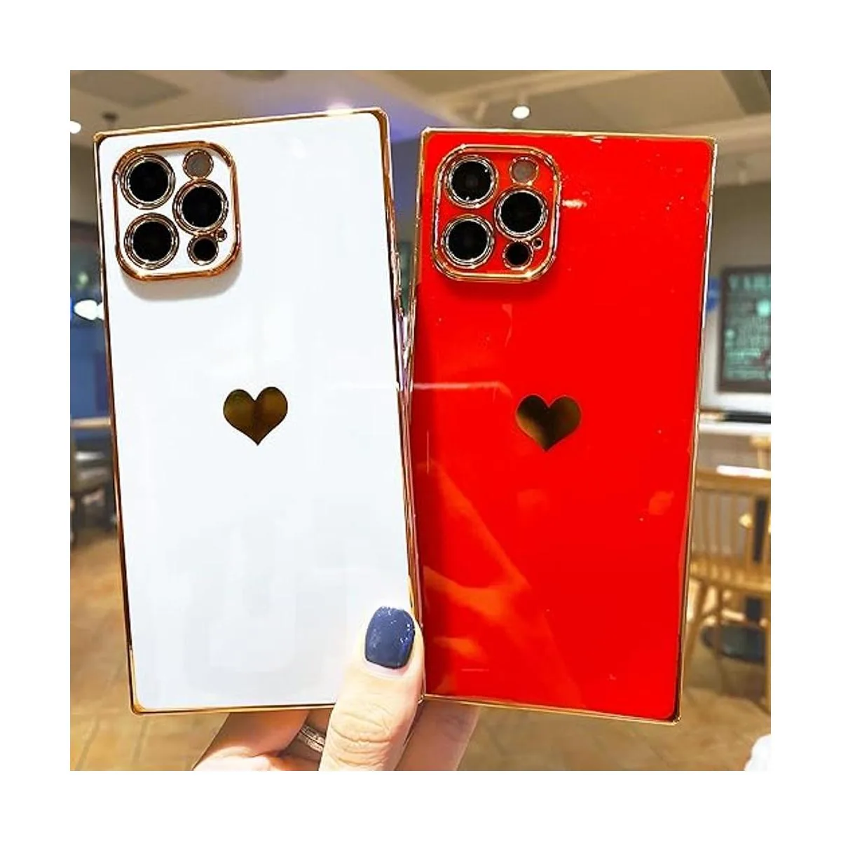 Diseño cuadrado con corazón galvanizado La funda cuadrada con corazón para iPhone 13 Pro Max está hecha de poliuretano termoplástico TPU flexible. Los bordes con amortiguación y los de la cámara adoptan la tecnología de galvanoplastia dorada, que no se decolora, se siente suave y cómoda, hace que tu iPhone se vea único y tiene un hermoso aspecto elegante y brillante. El perfil delgado y ajustado con agarre elegante te proporciona un toque de alta calidad.