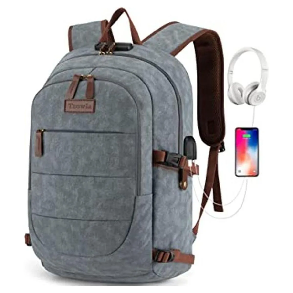 Tzowla Mochila de lona para laptop, Gris claro, 15.6pulgadas, Mochilas tipo mochila