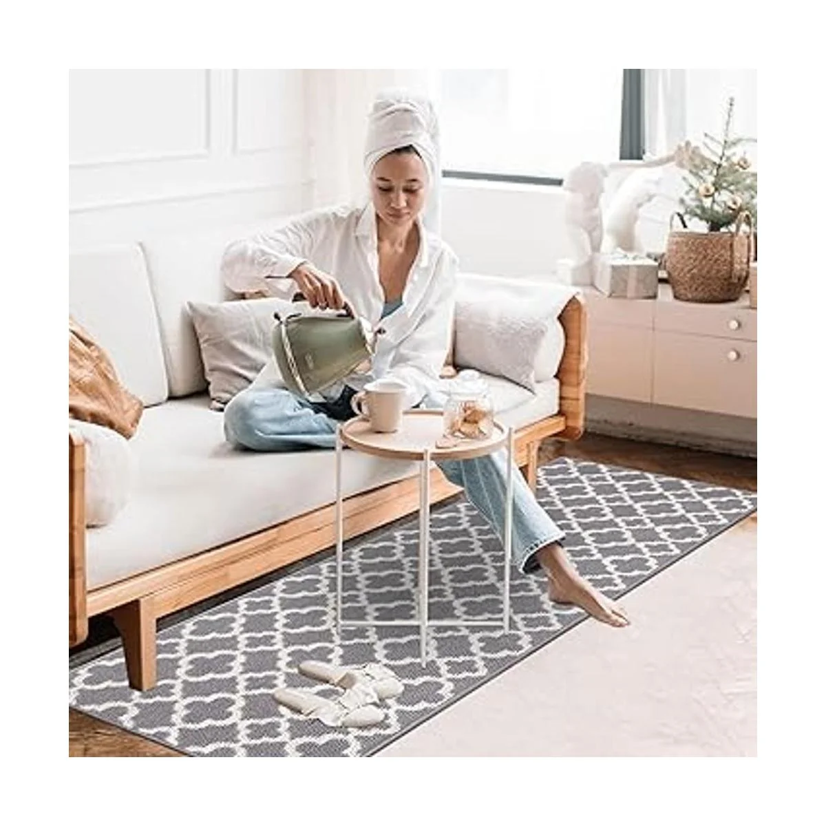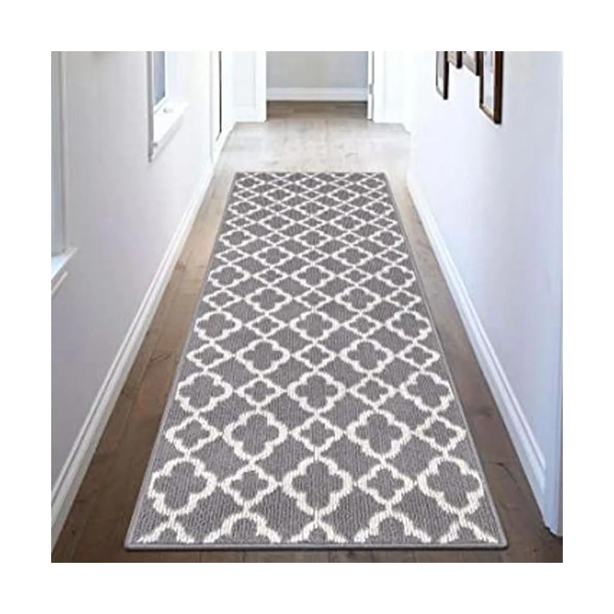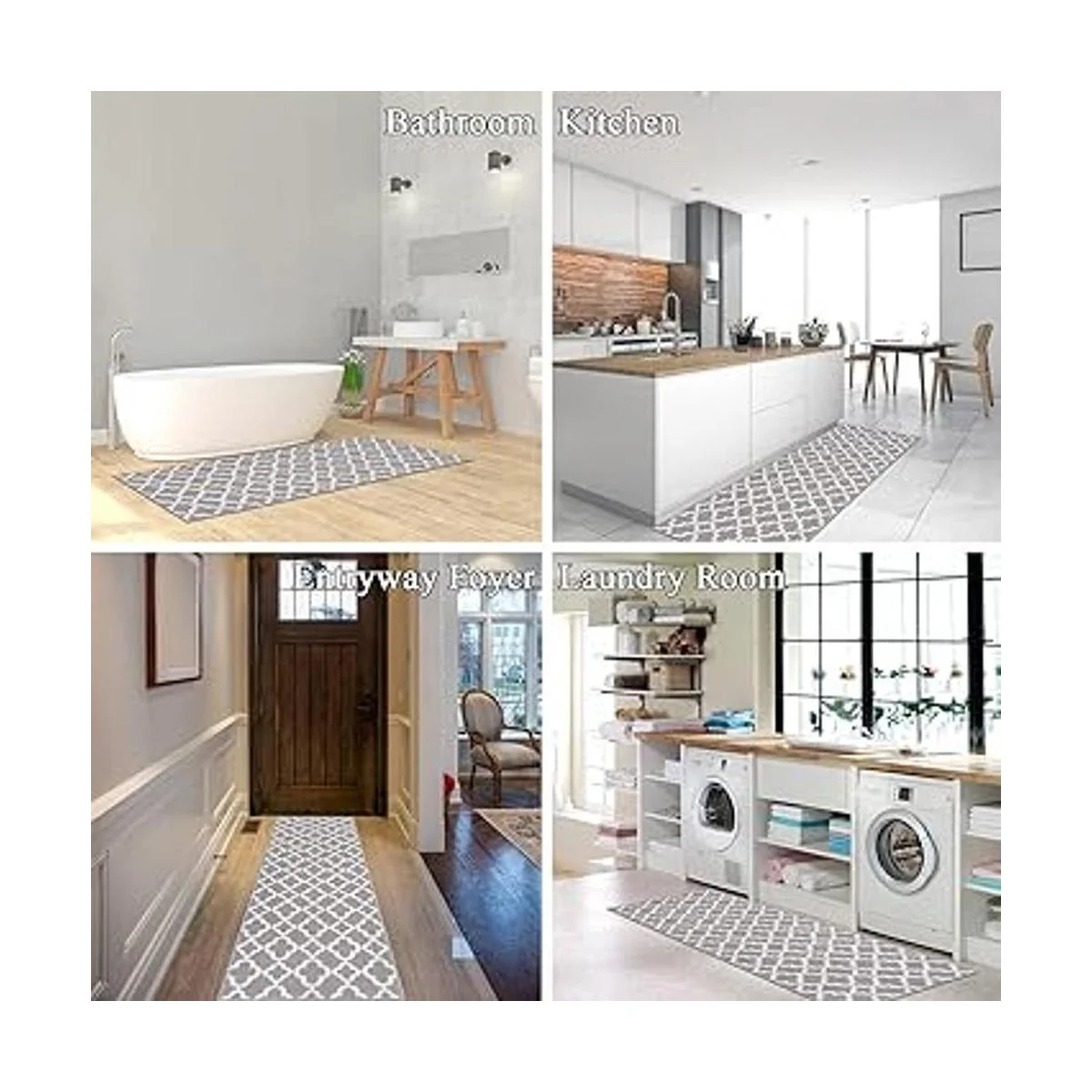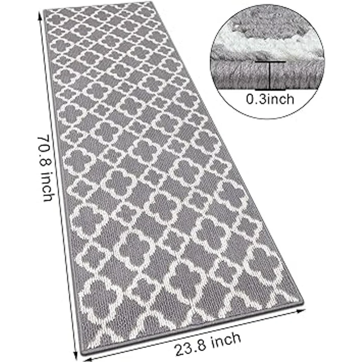 UArtlines Alfombra marroquí de enrejado para pasillo, 2 x 6 pies de largo, alfombra de lavandería con respaldo de goma antideslizante, alfombra lavable, alfombra de área gris para cocina, pasillo, entrada