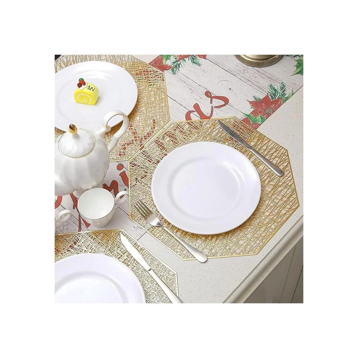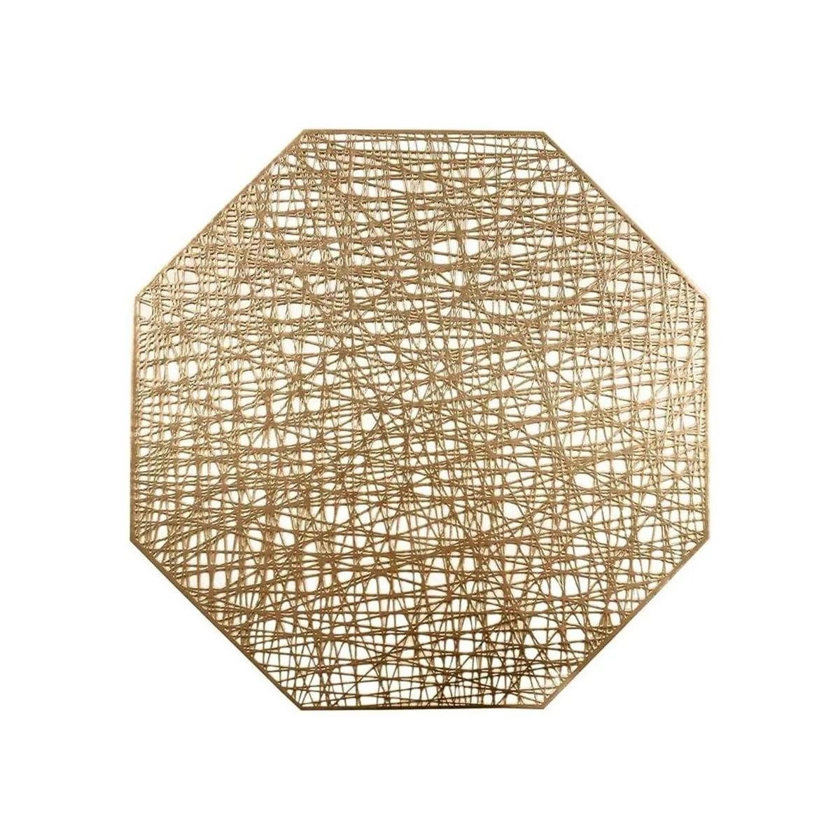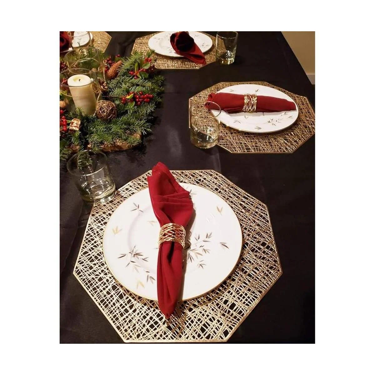 UArtlines Manteles individuales octogonales, tapetes huecos, de vinilo antideslizante, aislamiento térmico para mesa de cocina color dorado octogonal, 6 piezas
