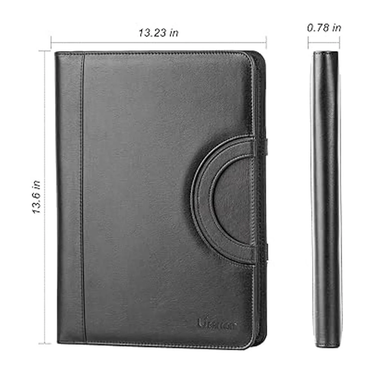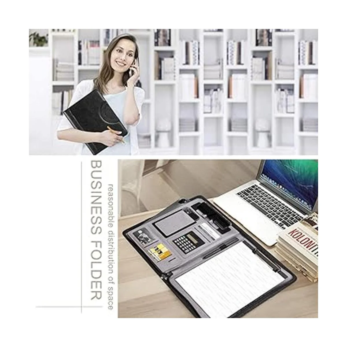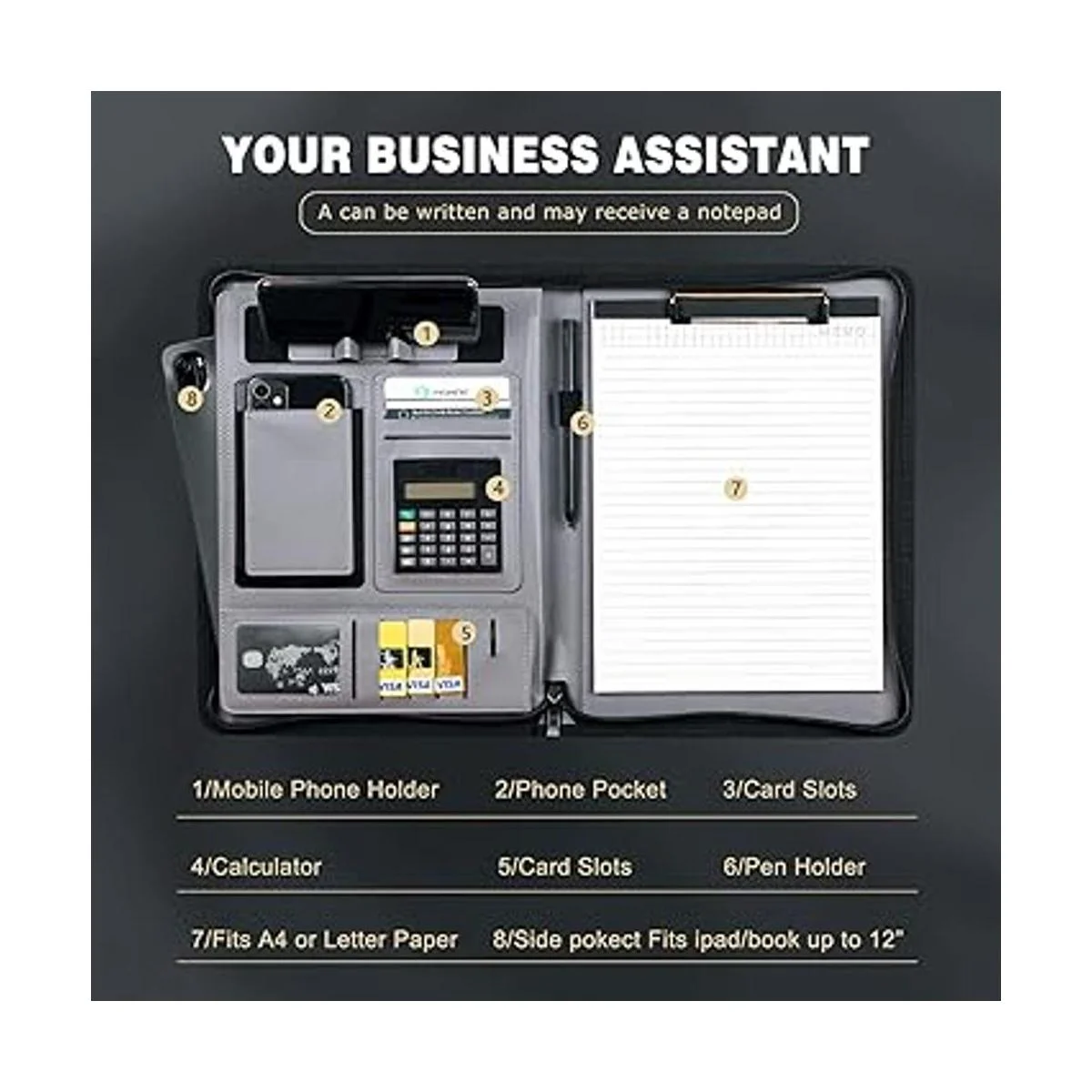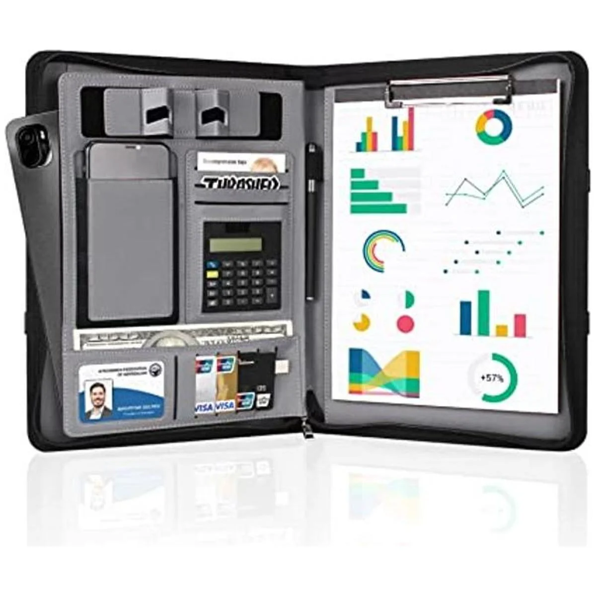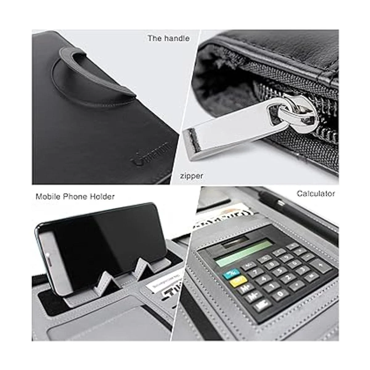 UBAFNOM Padfolio Portfolio Carpeta Organizador de cartera de negocios de cuero vegano con calculadora Cartera con cremallera Padfolio para mujeres y hombres