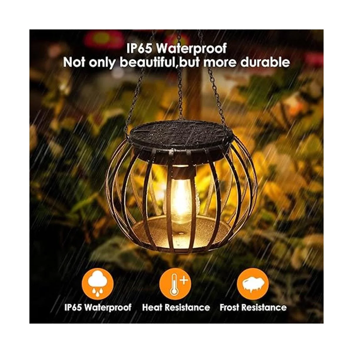 Diseño delicado Dimensiones: 7 pulgadas de largo x 7 pulgadas de ancho x 5.5 pulgadas de alto. Cadena: 16.9 in. La linterna solar para exteriores está bien diseñada para decoración de interiores y exteriores. Hace que tu jardín sea un espacio mágico y es perfecto para entretener o relajarse después de la oscuridad.
