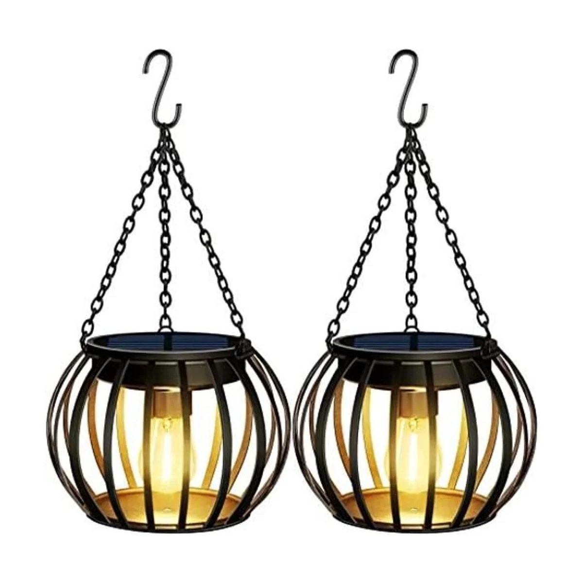 UBright Linterna solar para exteriores, luces solares colgantes de metal para exteriores, luces decorativas de metal para exteriores, luces decorativas con energía solar, impermeable, para jardín, patio, camino, paquete de 2