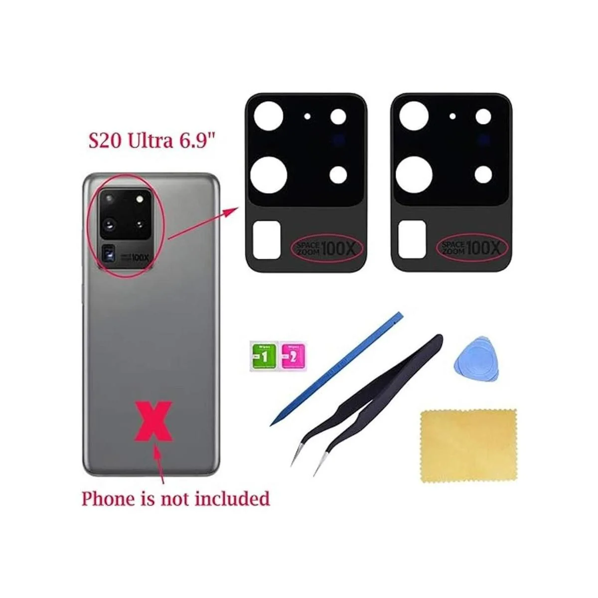 Ubrokeifixit Cubierta de lente de cristal para cámara trasera ultra para Galaxy S20 Ultra de repuesto con cinta precortada para Samsung Galaxy S20 Ultra de 6.9 pulgadas SMG988 no para S20 de 6.7 pulgadas, no para S20 de 6.2 pulgadas S20 Ultra2 piezas