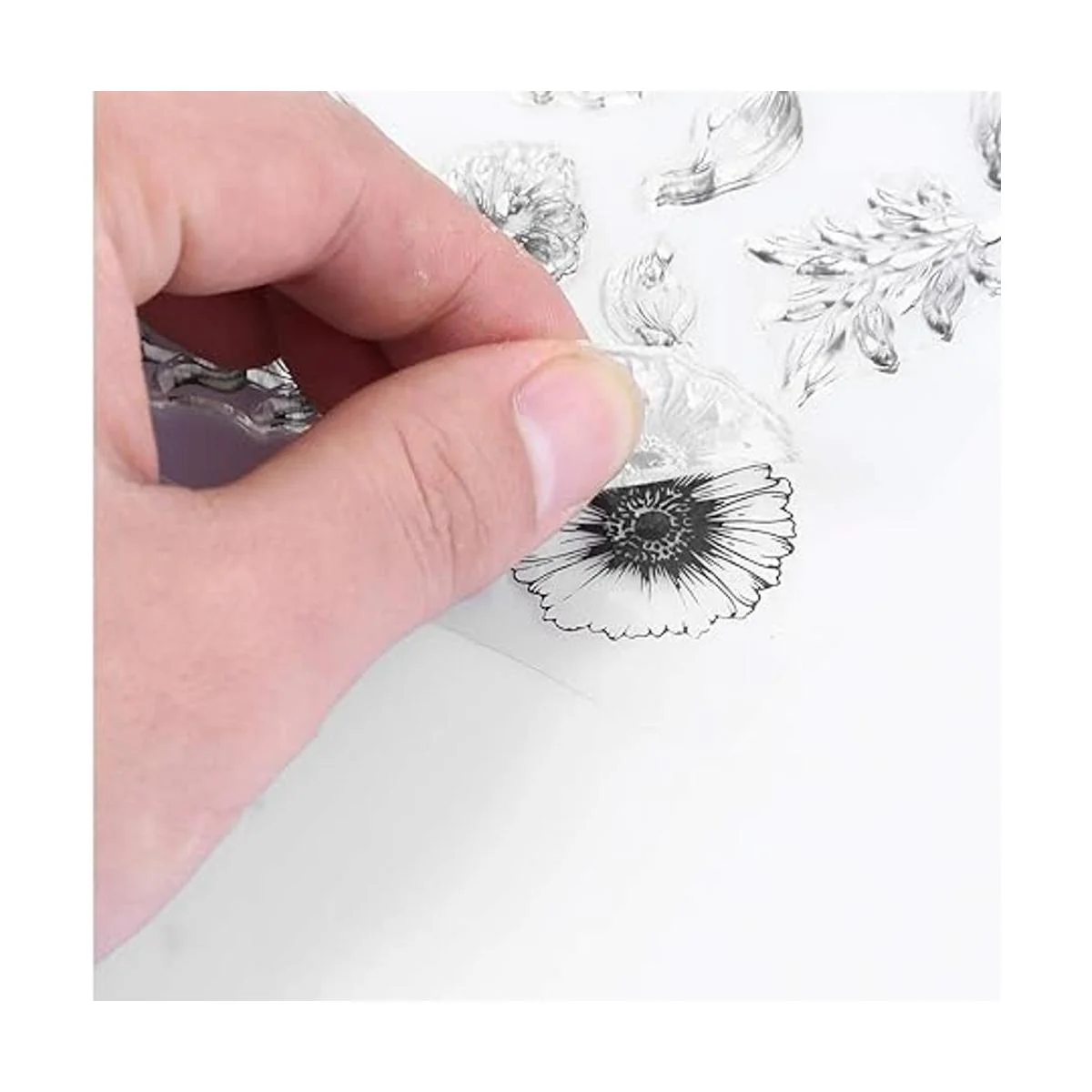 UCEC 8 hojas de sellos transparentes, sellos de goma de silicona para plantas y flores, pequeños sellos transparentes para decoración de tarjetas y álbumes de recortes de bricolaje
