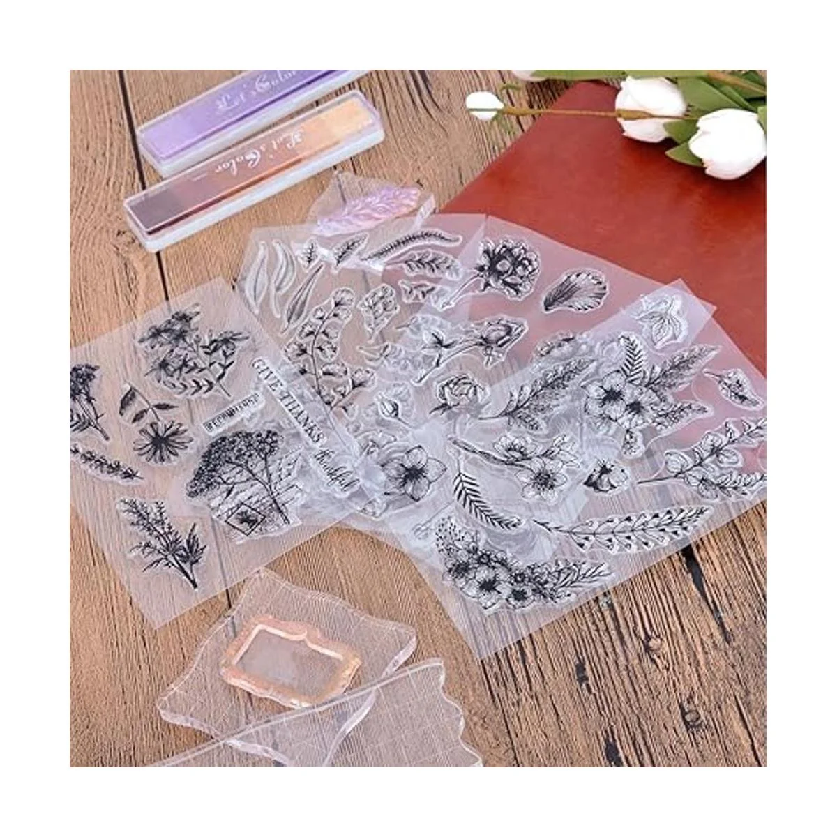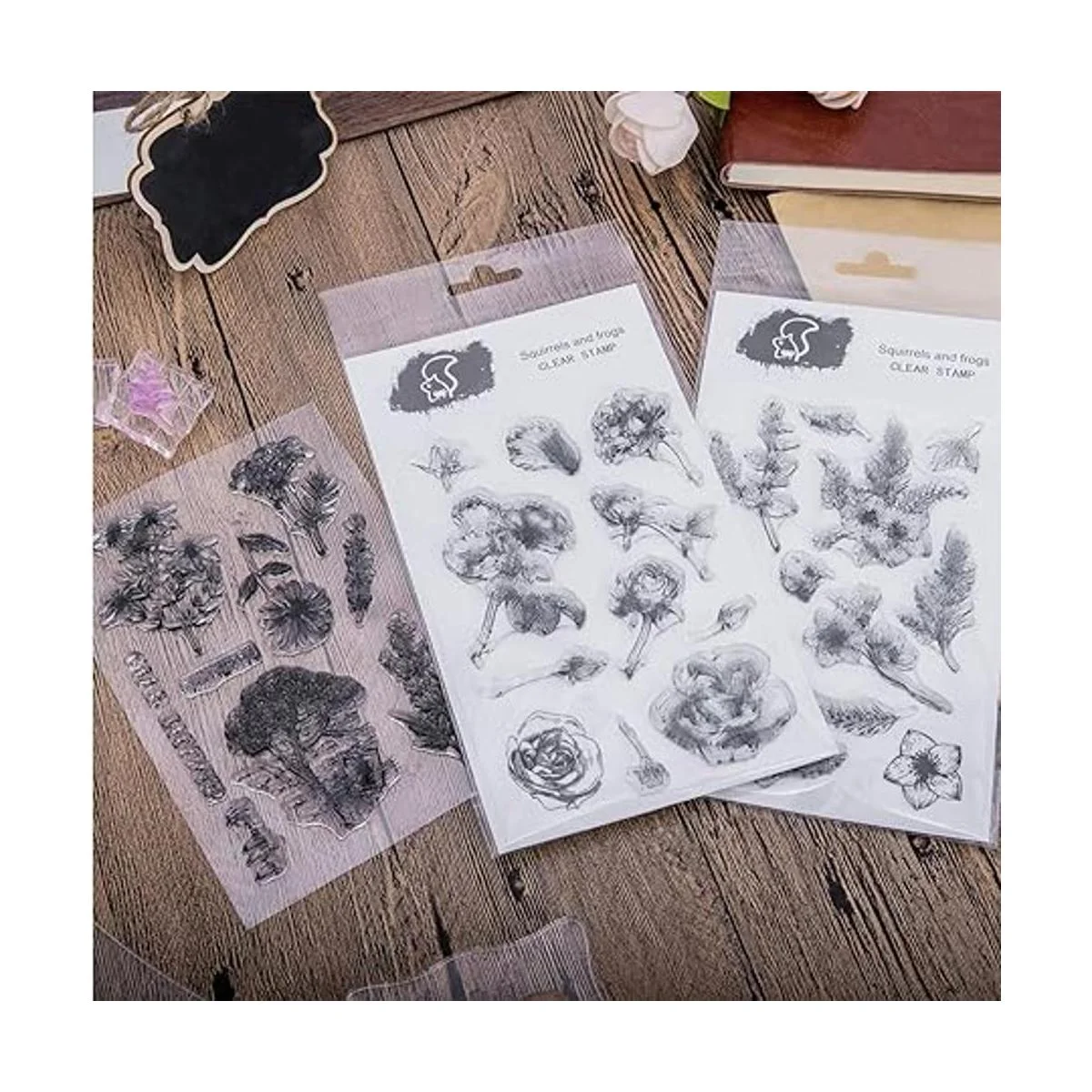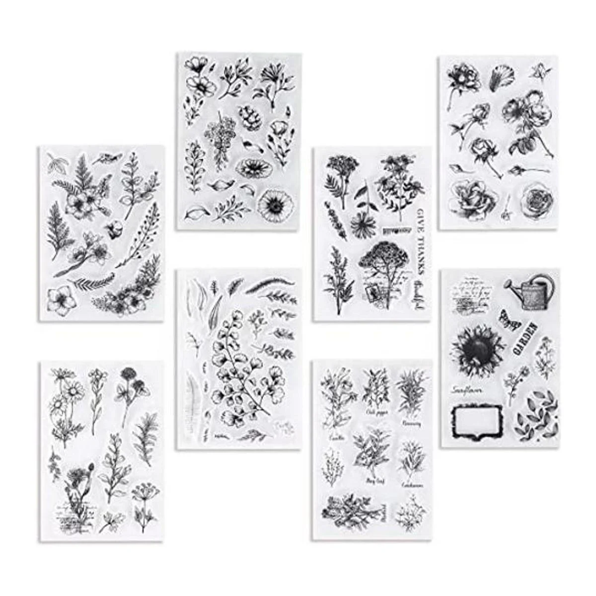 Sellos CLAER con patrones ricos Sellos de goma para hacer tarjetas con 8 temas diferentes de plantas. Muchos patrones bonitos, para satisfacer todas tus necesidades de estampado.
