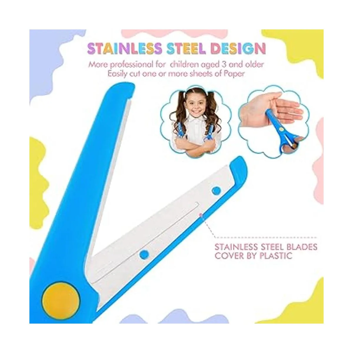 DIY para divertirse El juego de tijeras para bebé es adecuado para niños en entrenamientos preescolares o profesores y estudiantes en clases de artesanía. Los niños pueden crear diseños divertidos con estas tijeras de papel. Las tijeras para niños ofrecen puntas redondas y solo pueden cortar papel y tarjeta, no tienes que preocuparte por que tus hijos se corten los dedos o el cabello.