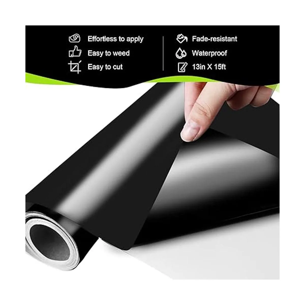 Corte sin alfombrilla: 13 x 15 pies. Nuestro vinilo adhesivo negro funciona sin una alfombrilla, conveniente y ahorra tiempo. Rollo de vinilo negro proporcionado para que puedas crear cualquier proyecto de bricolaje. Fácil de aplicar, resistente al agua y a la decoloración.