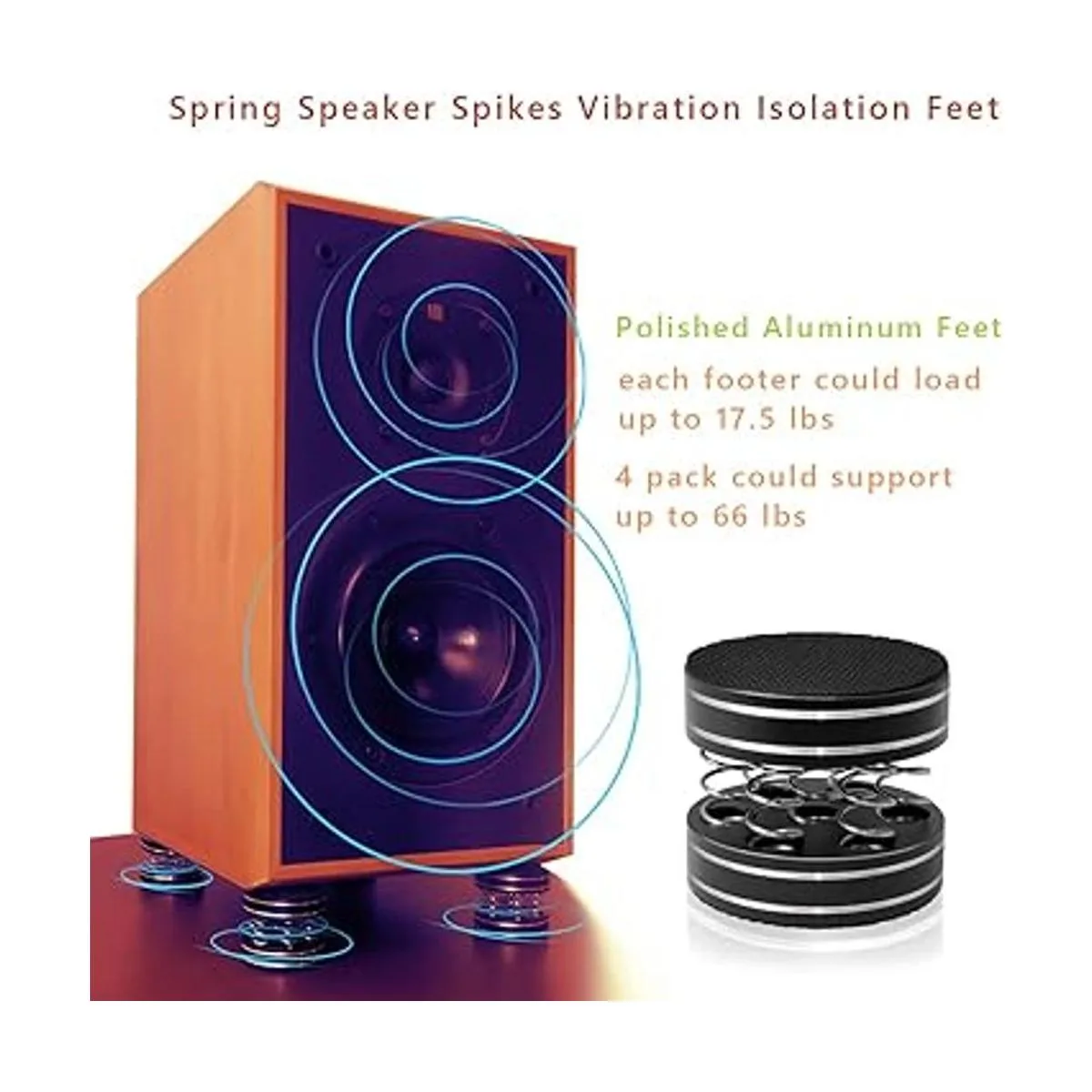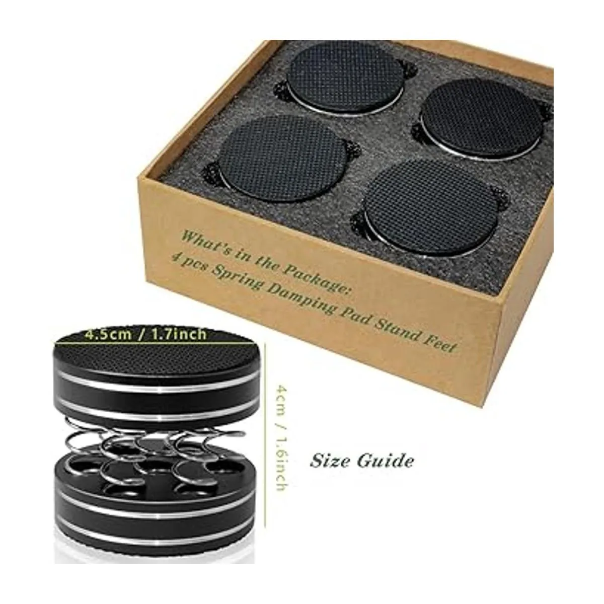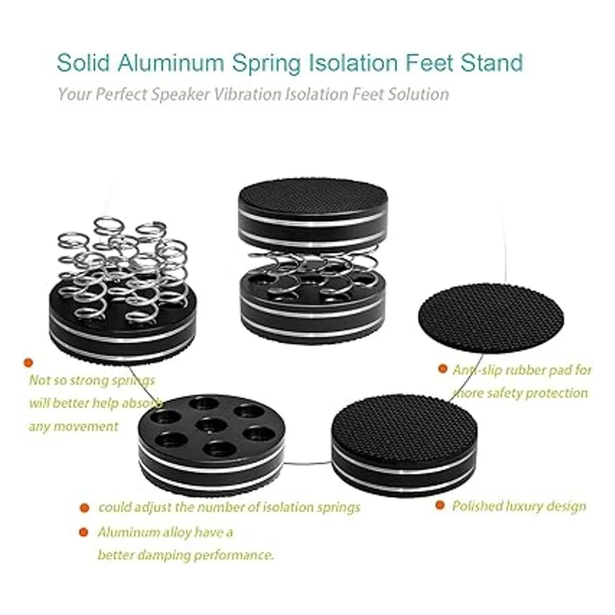 Aislamiento de mejora de sonido para altavoces: los pies de soporte ajustables ayudarán a tener un mejor efecto de sonido para tu altavoz. También puedes intentar ajustar el número de muelles de aislamiento para cada pie de pie de disco para obtener el mejor efecto para los altavoces. También será un aislamiento eficaz para los componentes de audio, aislarán el componente de audio de las vibraciones que atraviesan el suelo y el estante en el que descansan. Ayuda a reducir las vibraciones de manera eficaz.
