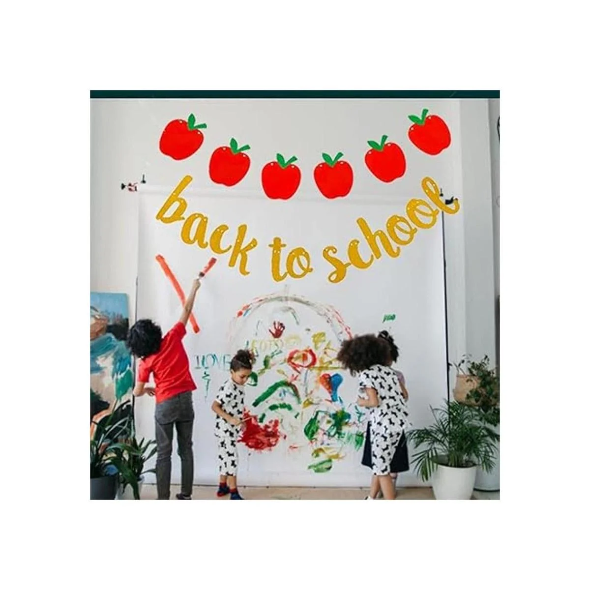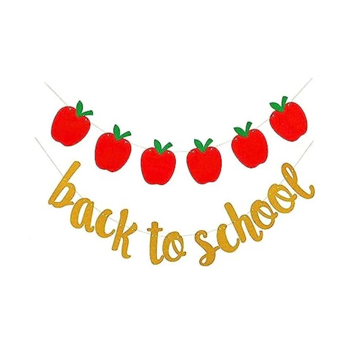 El paquete incluye: 1 pancarta de manzana y 1 pancarta de vuelta a la escuela.