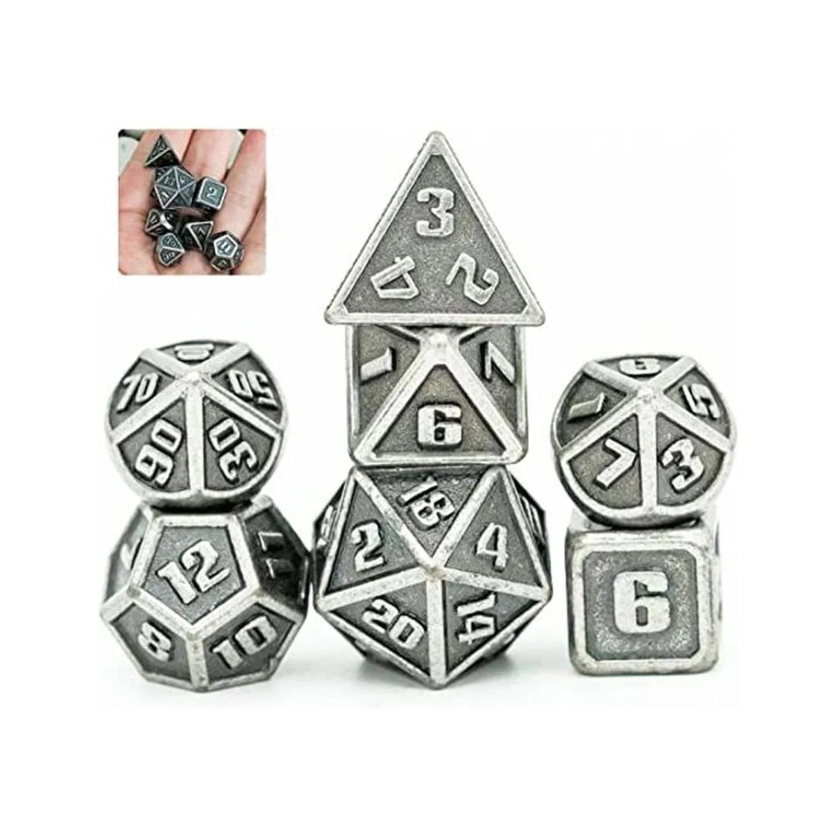 Juego completo de dados DND: este es un juego completo de dados de metal que incluye 1 D4, 1 D6, 1 D8, 1 D10 09, 1 D12, 1 D20 y 1 D 0090.