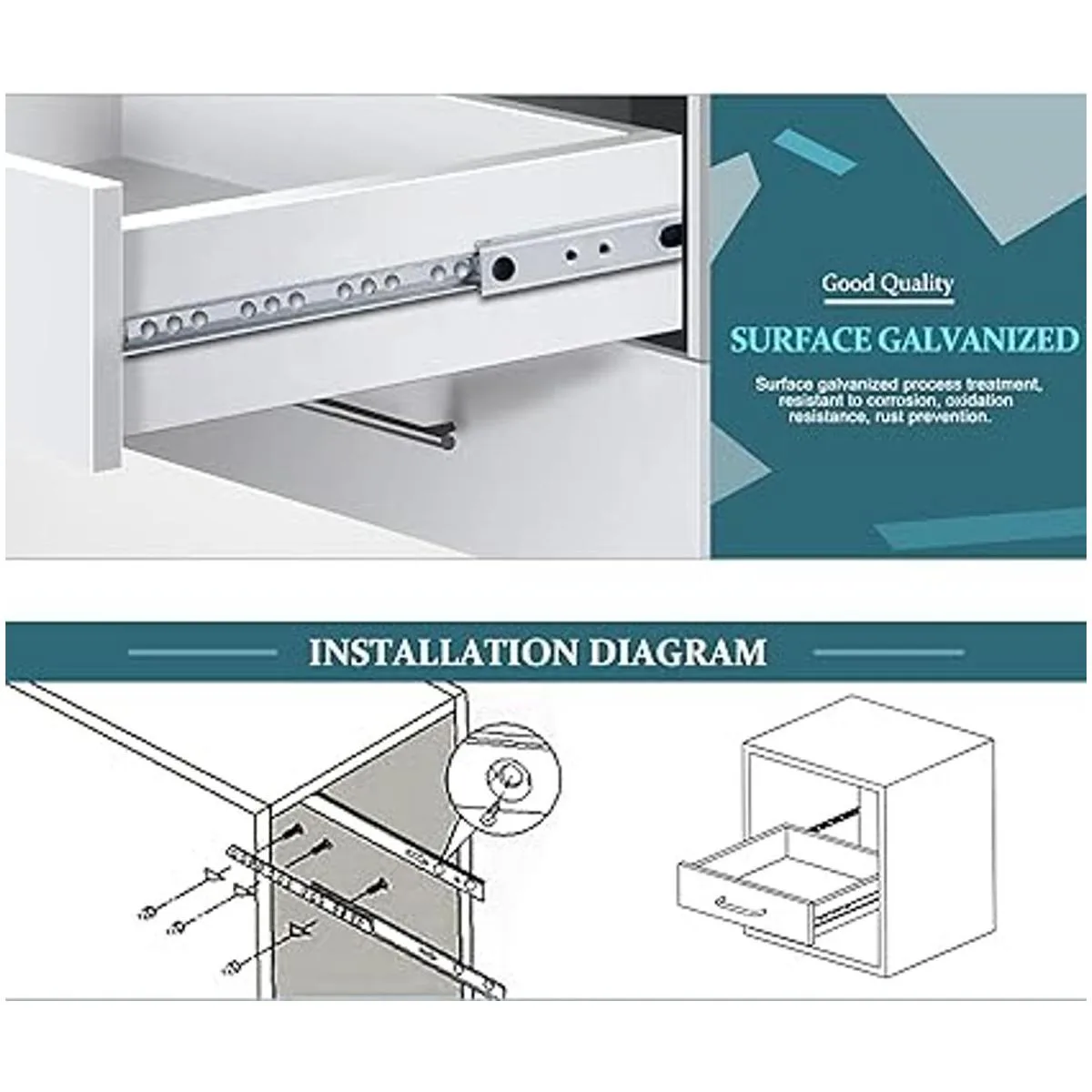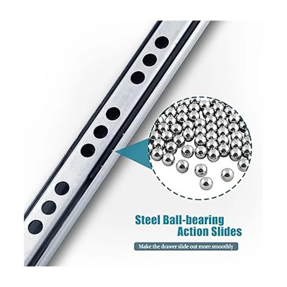 Función de cierre suave: con rodamientos de bolas de acero sólido, el riel deslizante del cajón permite abrir y cerrar el cajón suavemente y lentamente, evitando el ruido al empujar y tirar.