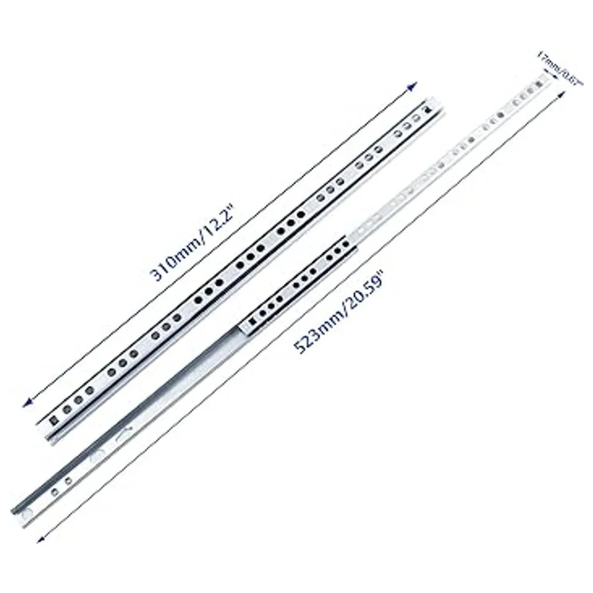 Uenhoy 1 par de diapositivas de cajón de 12.2 pulgadas de extensión completa con rodamiento de bolas de dos vías para cajones 0.669 in x 12.205 in