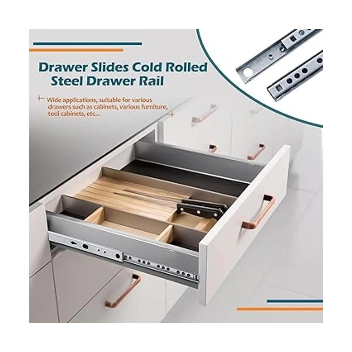 Material de alta calidad: las guías para cajones de armario están hechas de acero de alta calidad con acabado chapado en zinc, suave, resistente al desgaste, antioxidante, duradero y no es fácil de doblar.